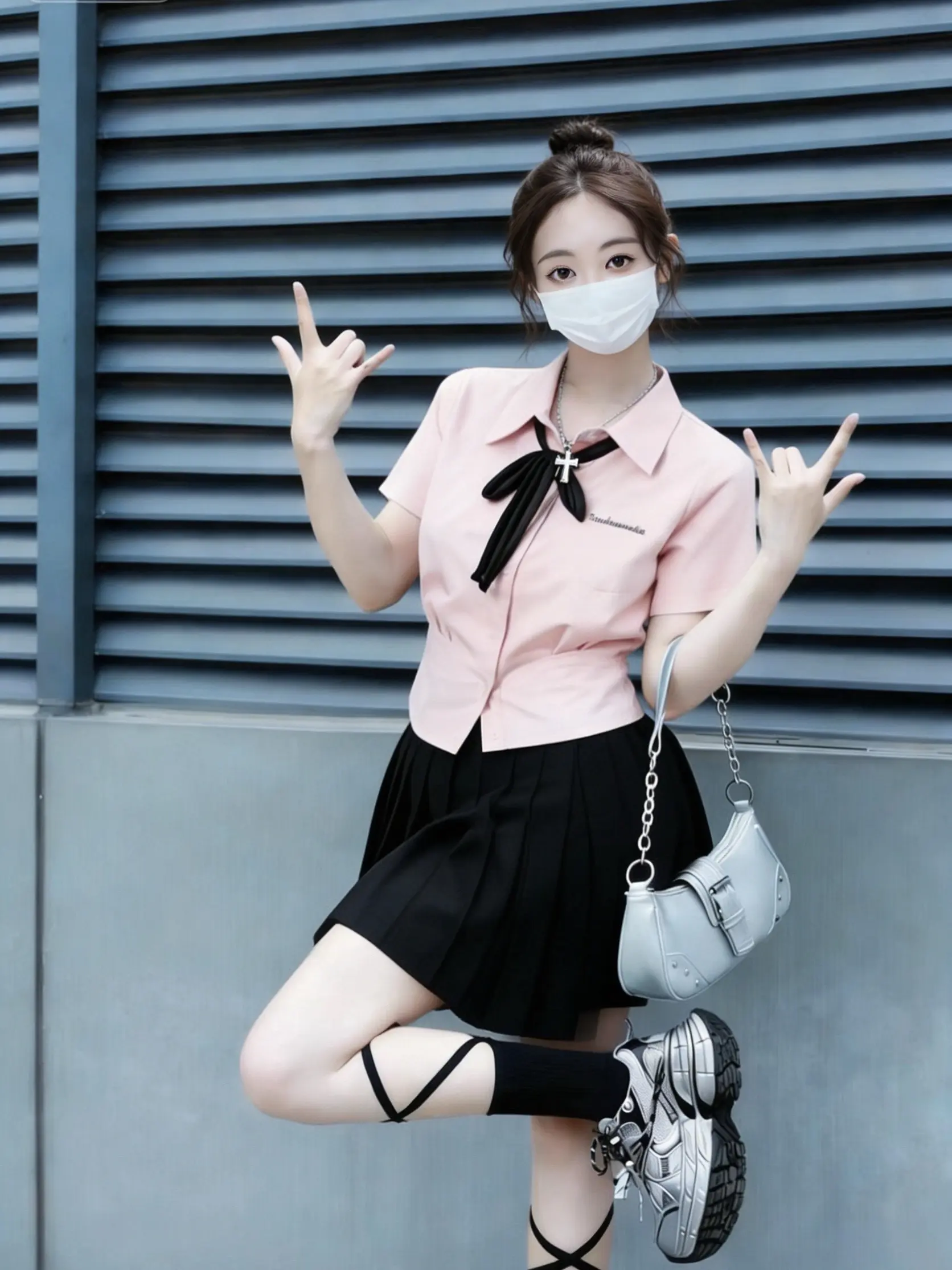 粉黑学院风!甜妹和酷妹都能穿💖。粉衬衫+黑百褶裙也太绝了吧!