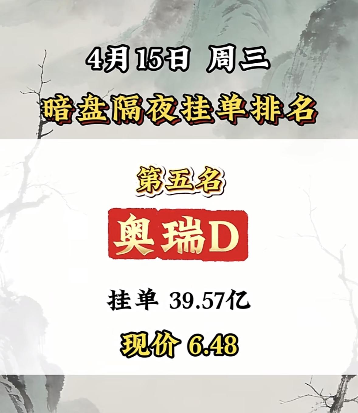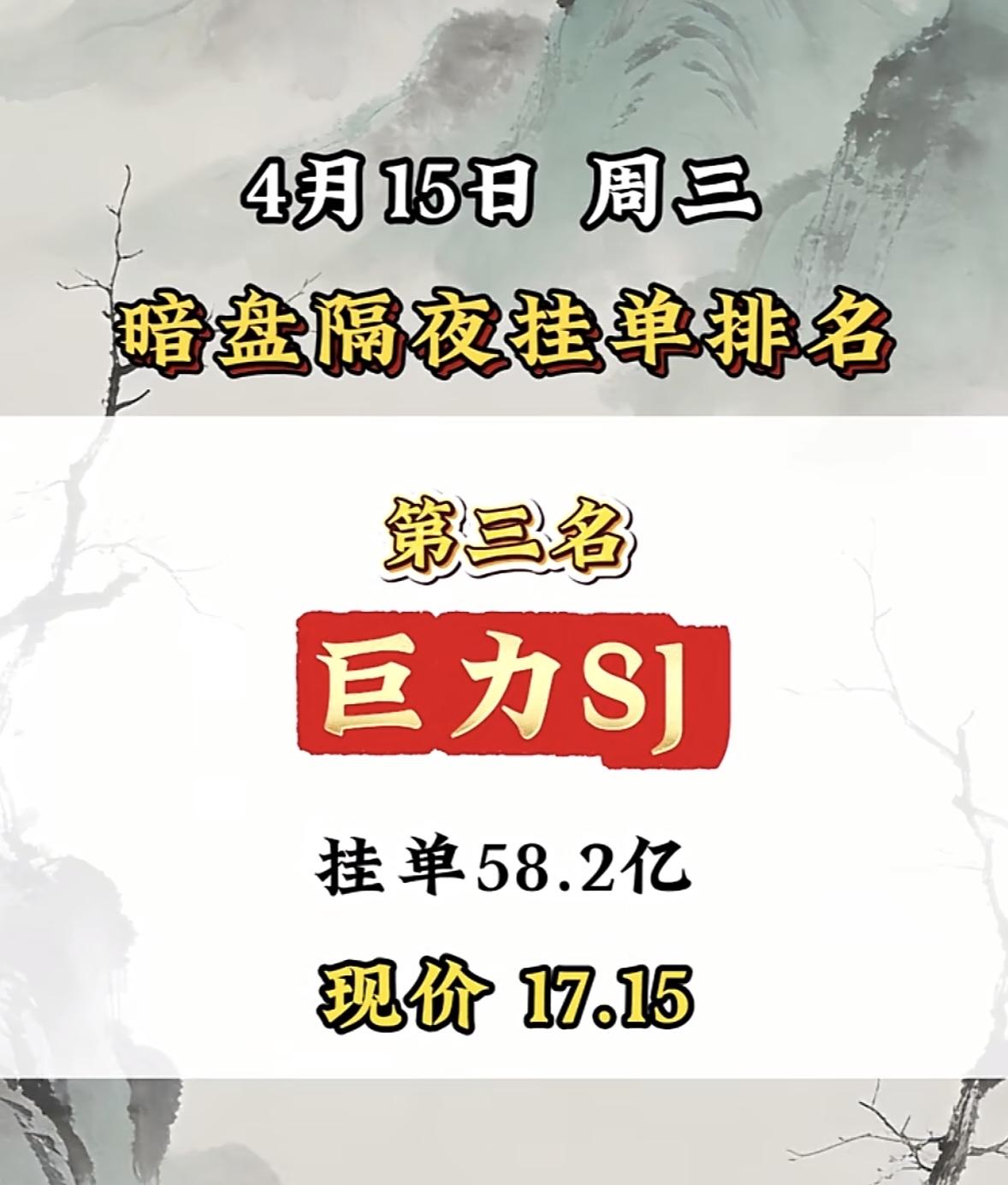 4月15日周三暗盘隔夜挂单排行榜出炉
