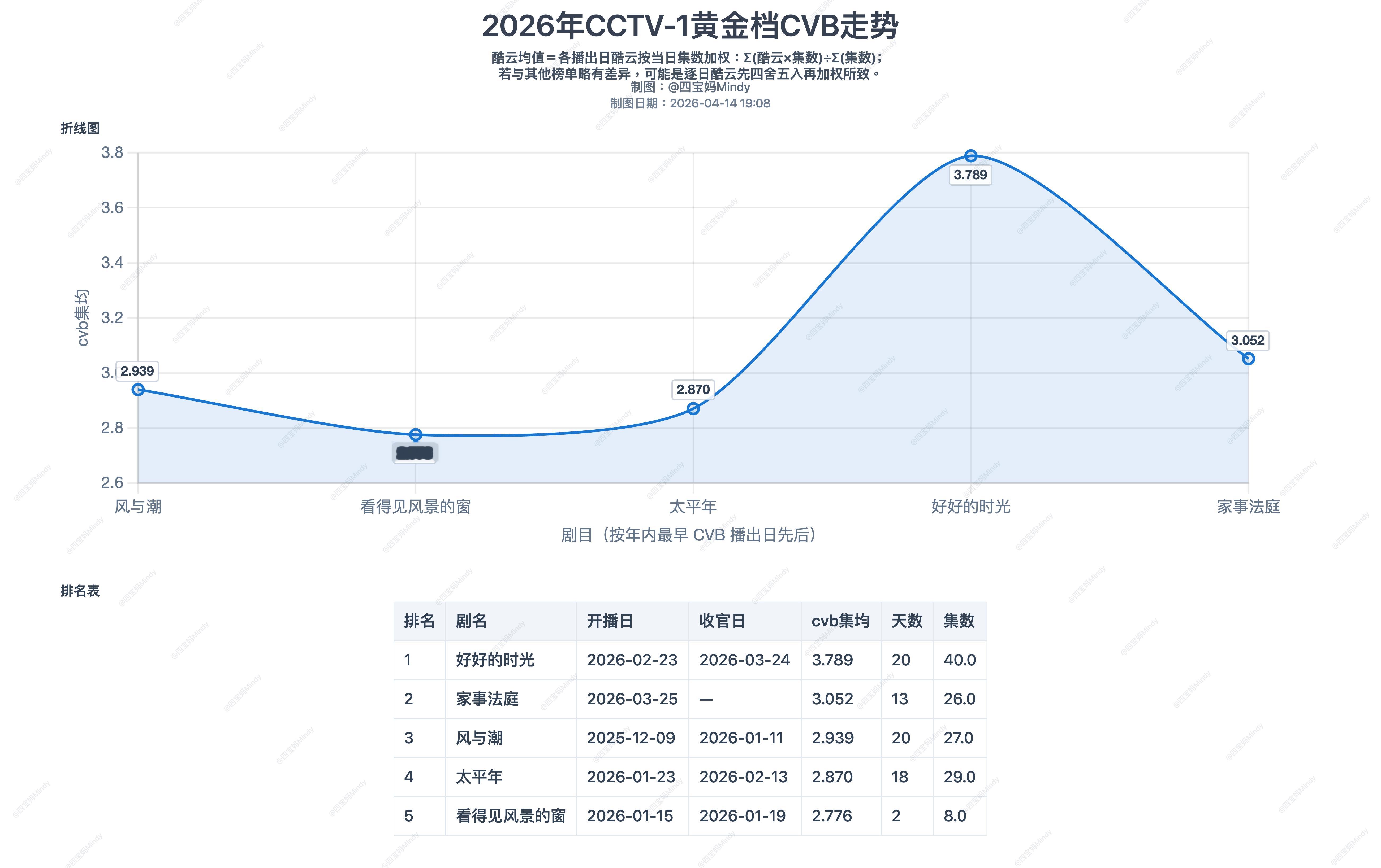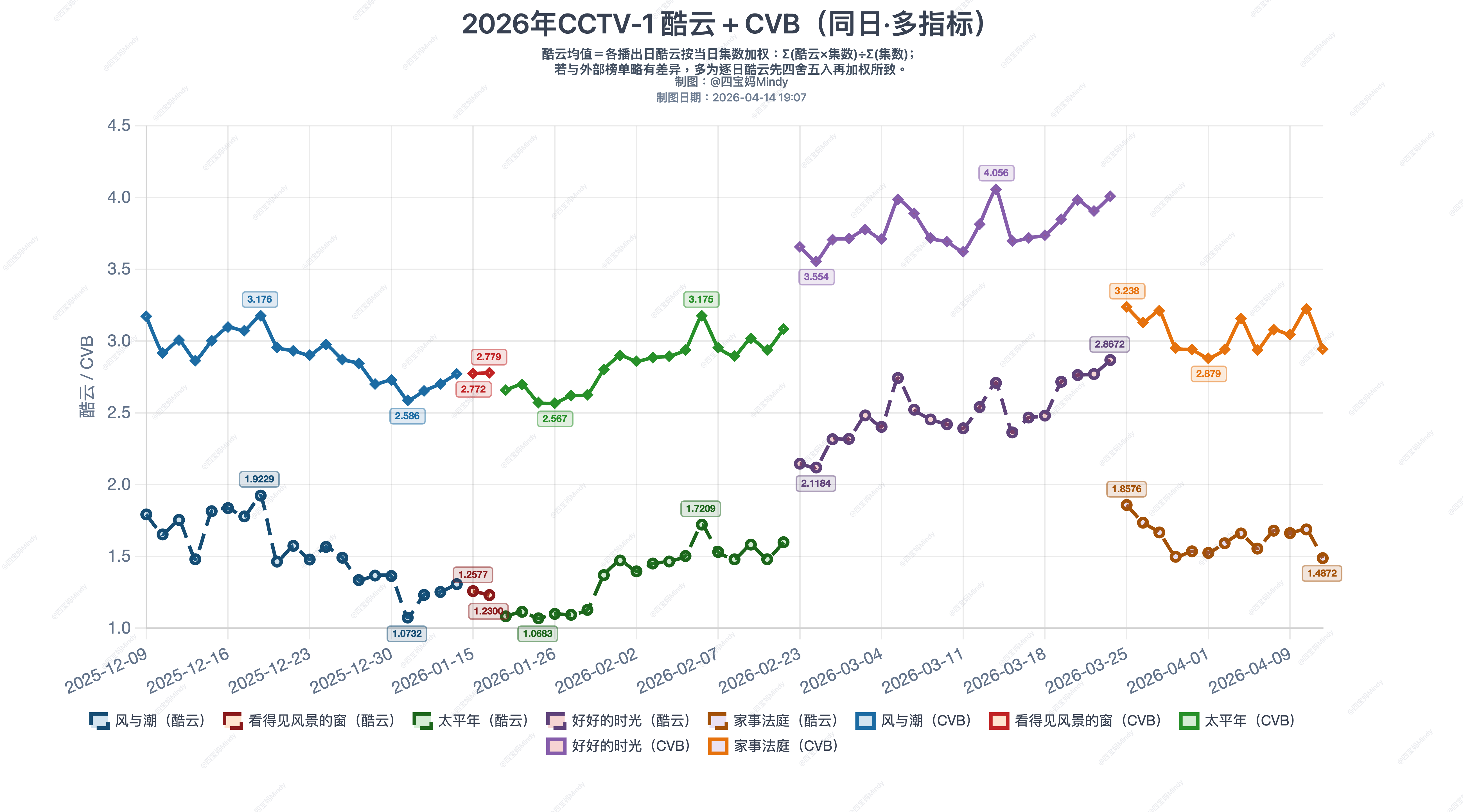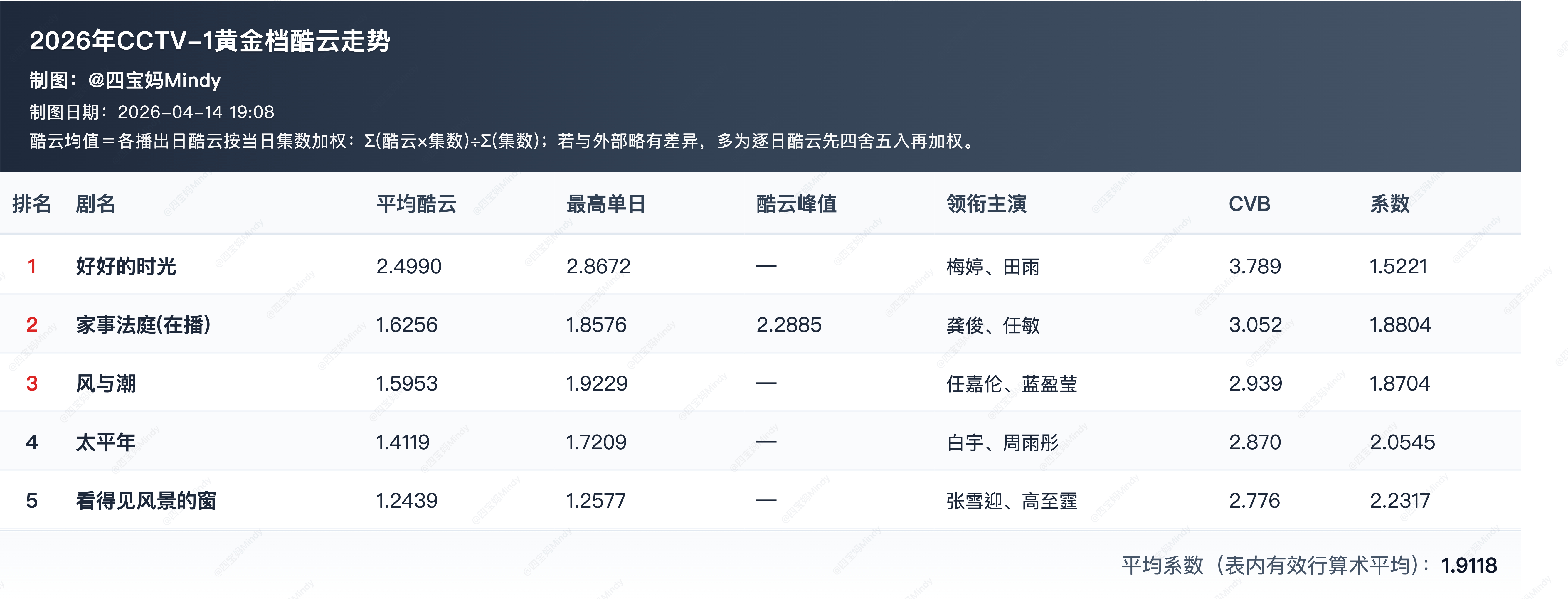 CCTV-1《家事法庭》最后数据CVB集均3.052 第二酷云集均1.6256 第二