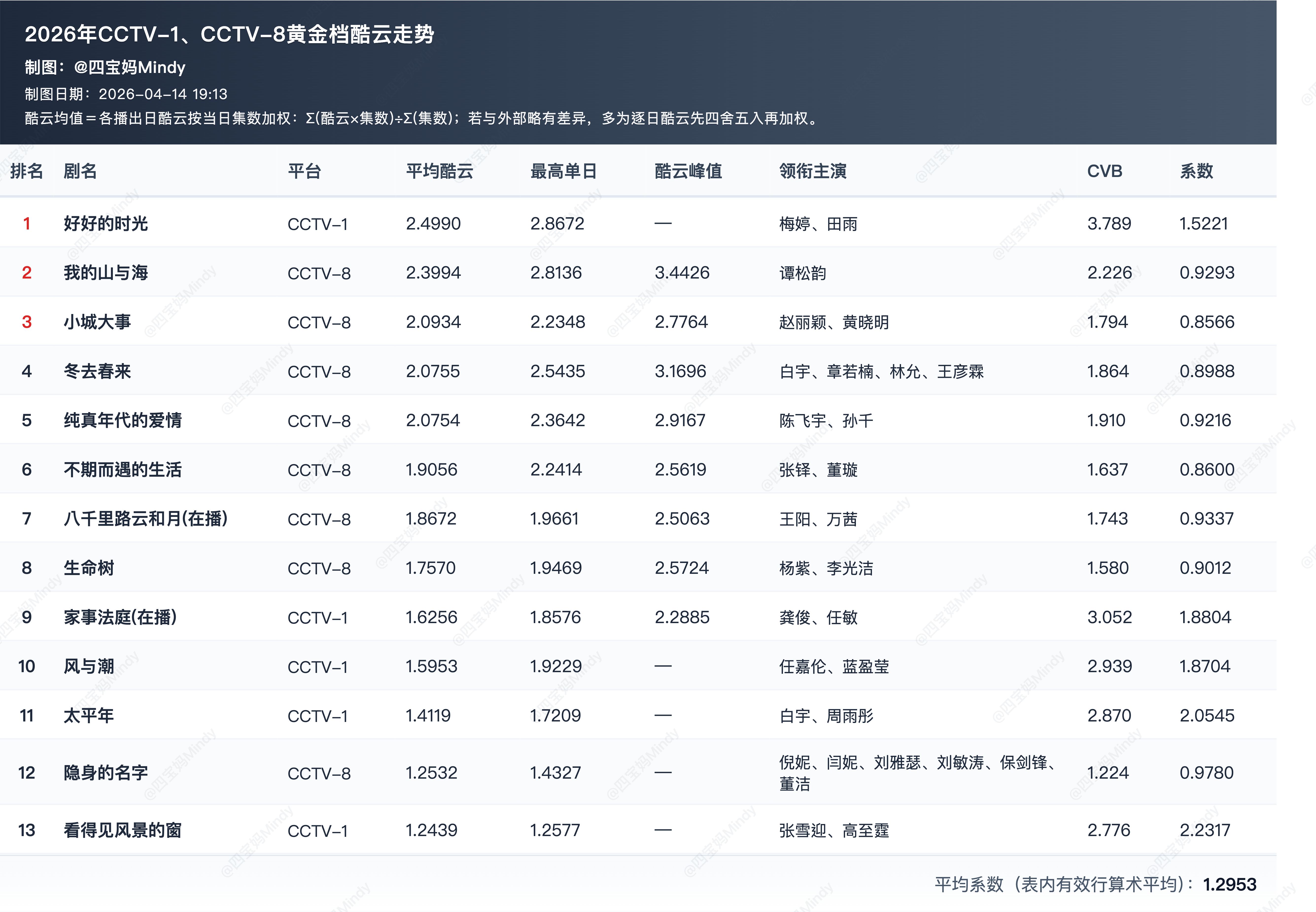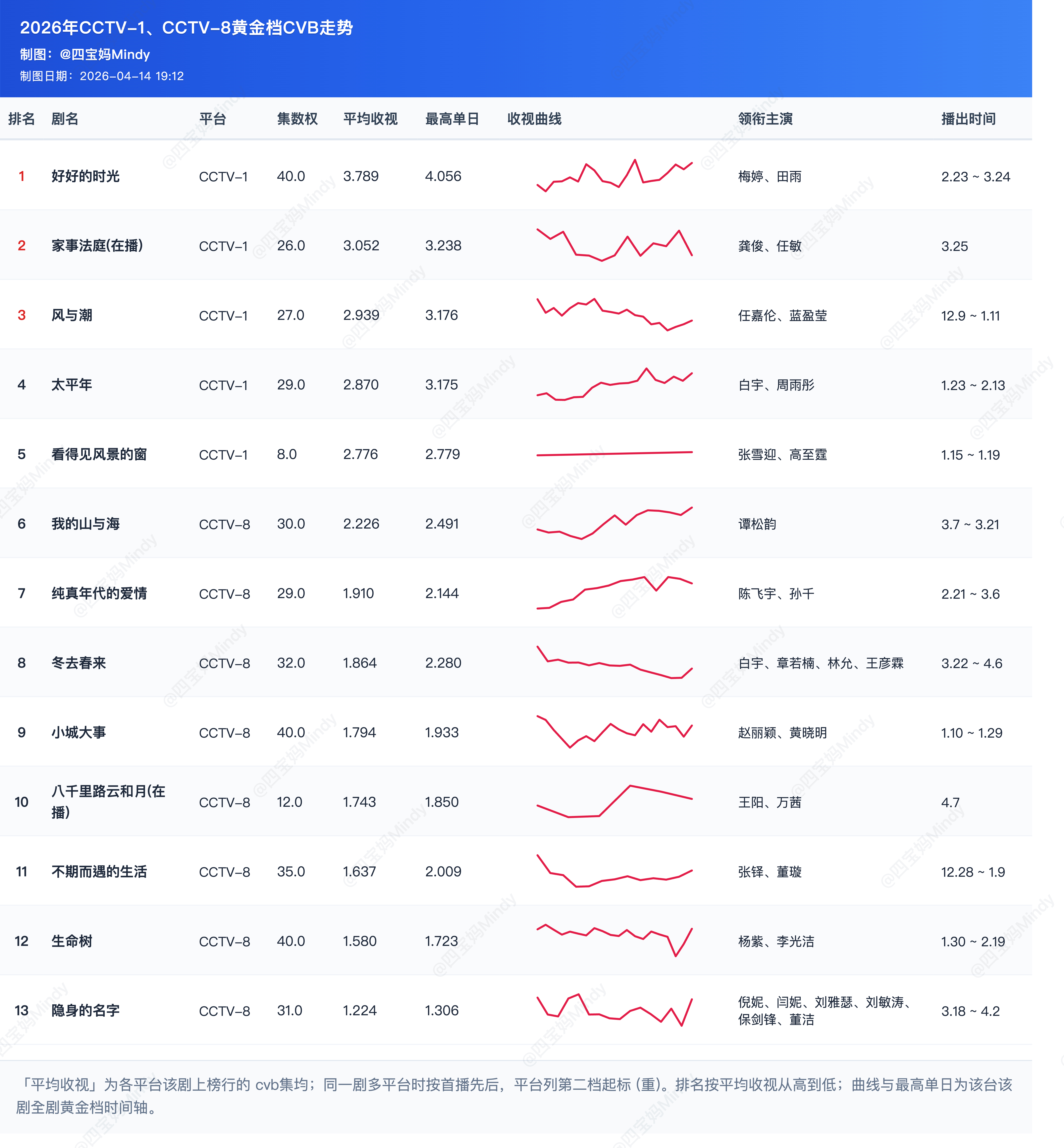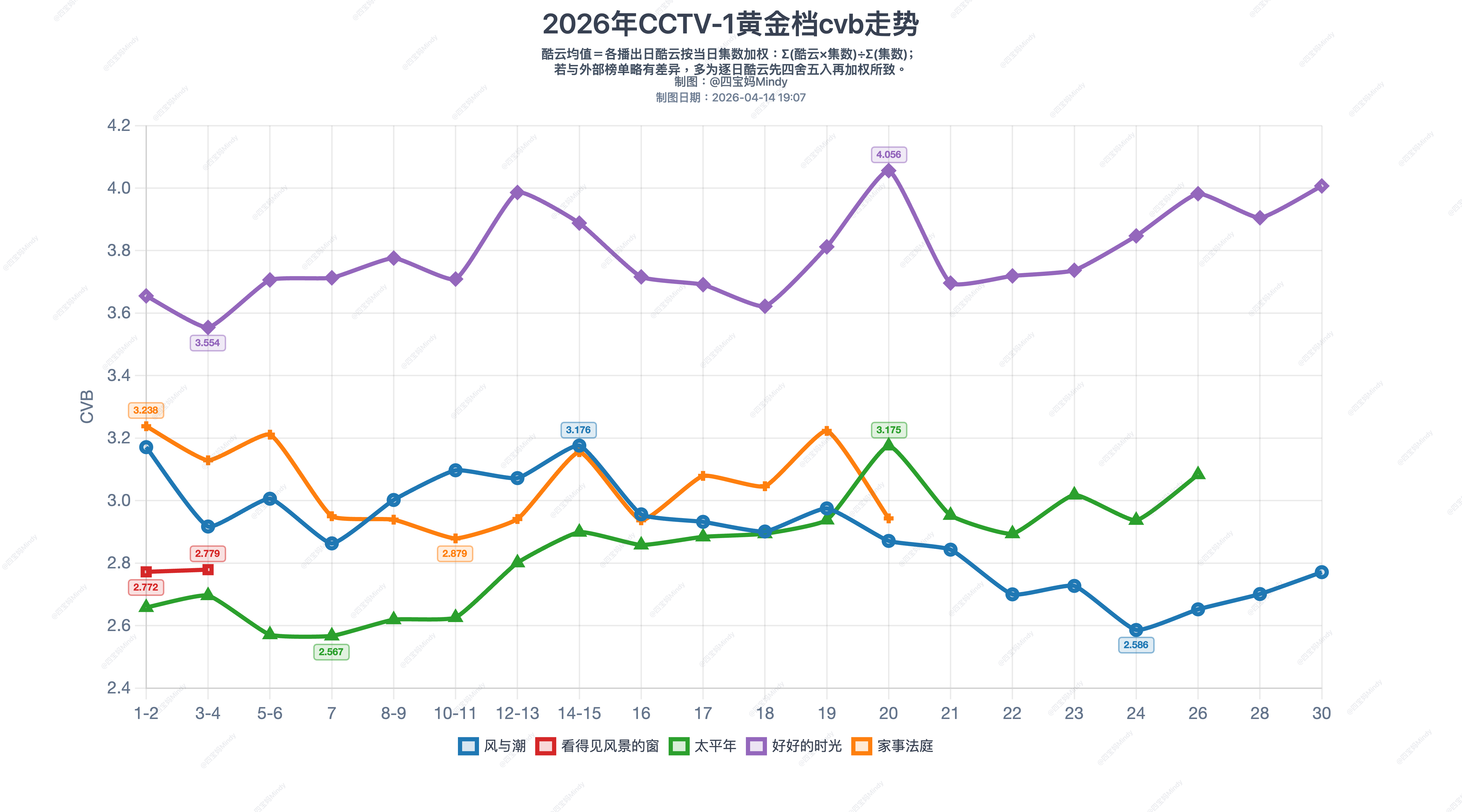 CCTV-1《家事法庭》最后数据CVB集均3.052 第二酷云集均1.6256 第二