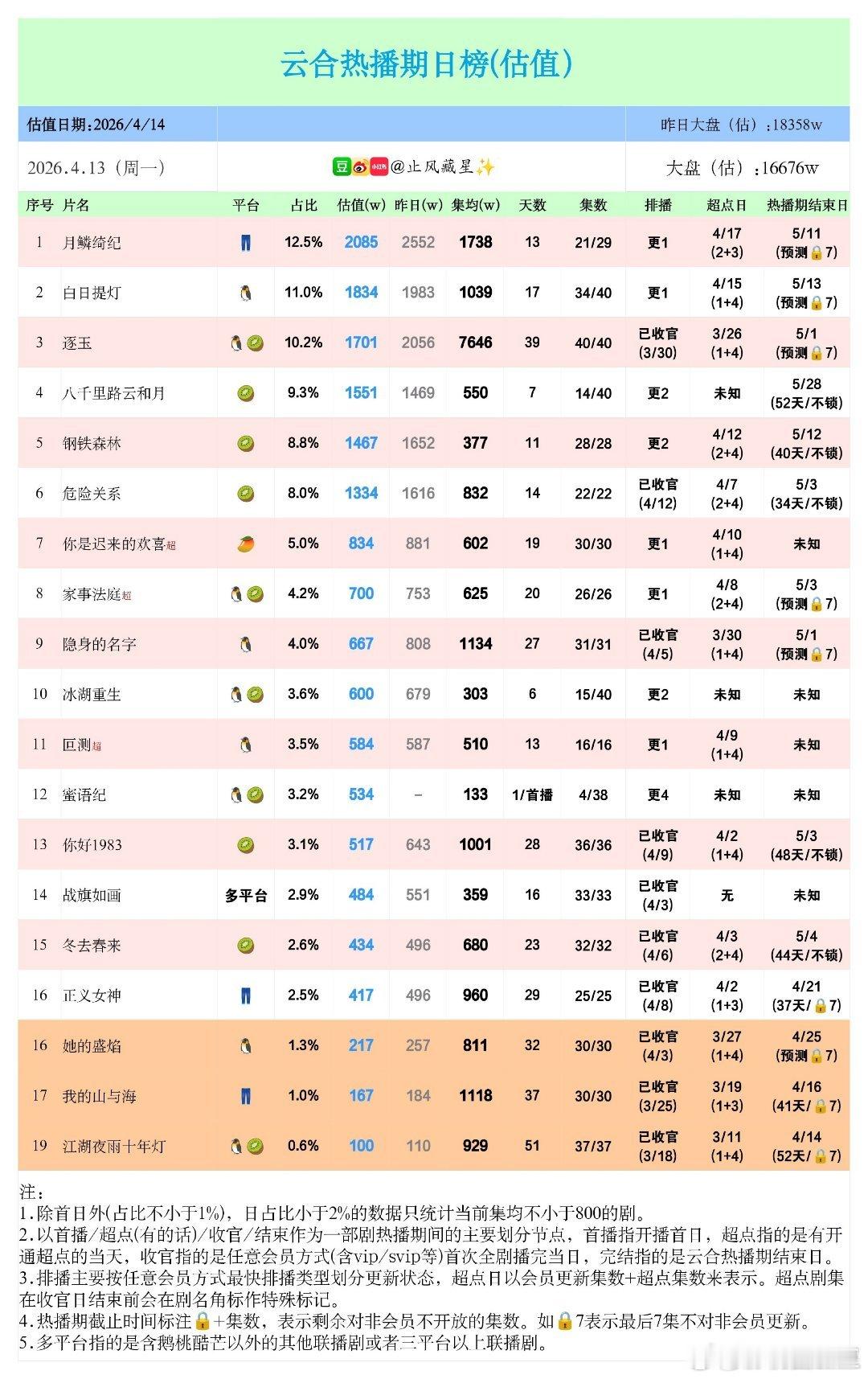 周翊然包上恩《江湖夜雨十年灯》今天热播期结束了,云合集均卡九太可惜了要不是前十集拍的镜头太烂剪的又稀碎所以赶客,这剧集均过千万没什么问题