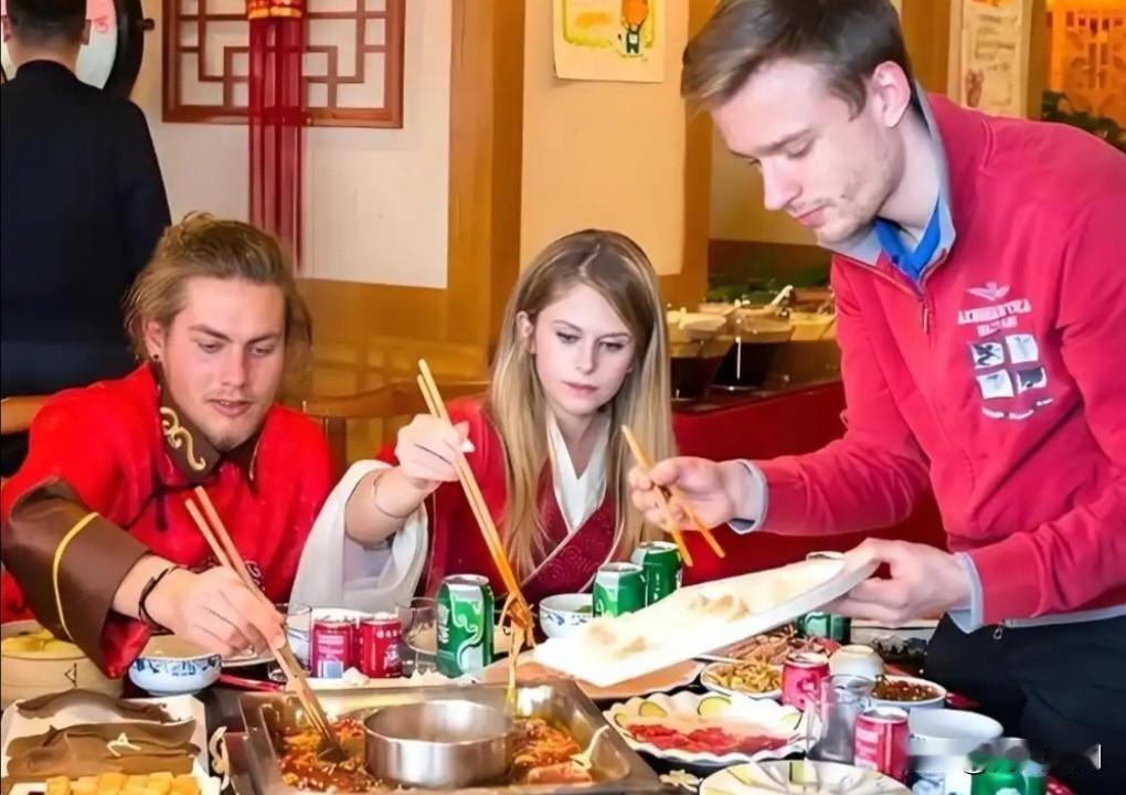 更绝的是穿搭和养生。他们开始穿棉拖踩马路,练起八段锦有模有样,硬生生把这当成了“潮流健身”。还有那火锅,海外店里天天排长队,老外们为了涮毛肚,苦练“七上八下”的神技,蘸麻酱蘸到停不下来!