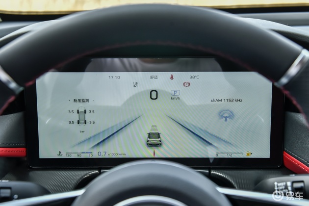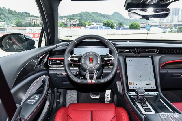 坐进车内,红旗H6内饰设计走了时尚路线,视觉效果非常不错。该车方向盘非常符合内饰风格,采用了真皮,碳纤维/翻毛皮材质,造型敦实。看一下中控,中控台设计合理,让内饰设计颇具层次感,看起来硬派。最后再来看下仪表盘和座椅,仪表盘设计可圈可点,很抓人眼球。该车采用了真皮/Alcantara混搭座椅,座椅宽大厚实,日常使用基本够了。