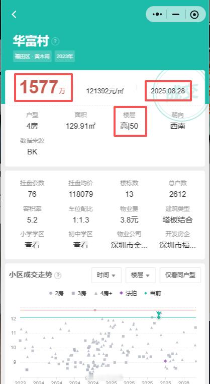 去年同户型高楼层二手价格1577万,当个二手来买了,这套还是毛坯房。深圳