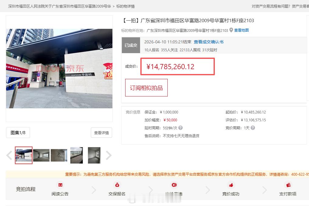 深圳福田华富村130平,法拍1478万成交,单价11.4万,无漏可捡。