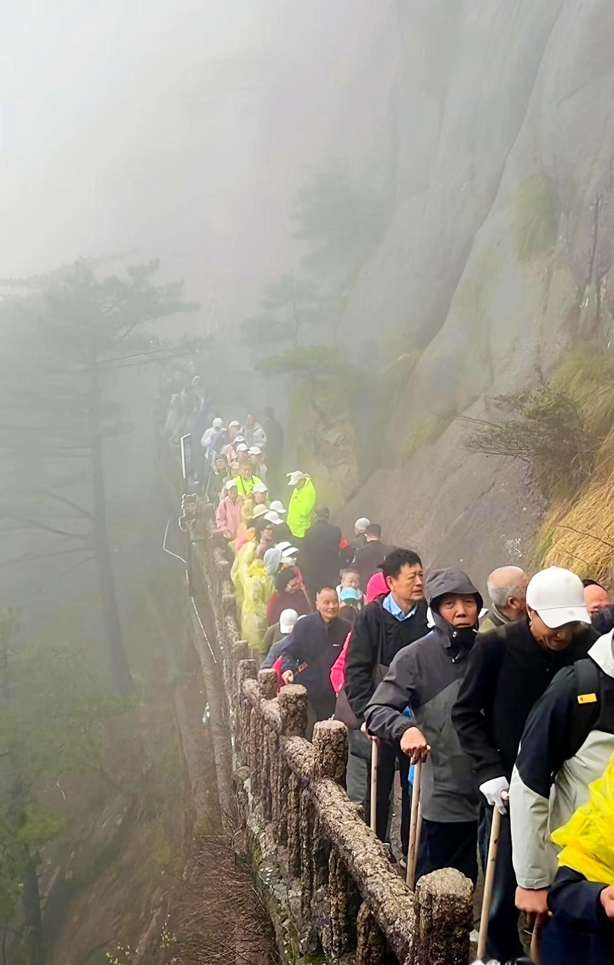 结果手机地图一划,我整个人贴在原地。所谓的两天行程,居然是同一条路走两遍。想去明天的天都峰,必须先坐大巴、再坐索道,回到今天迎客松的起点,从头再来。