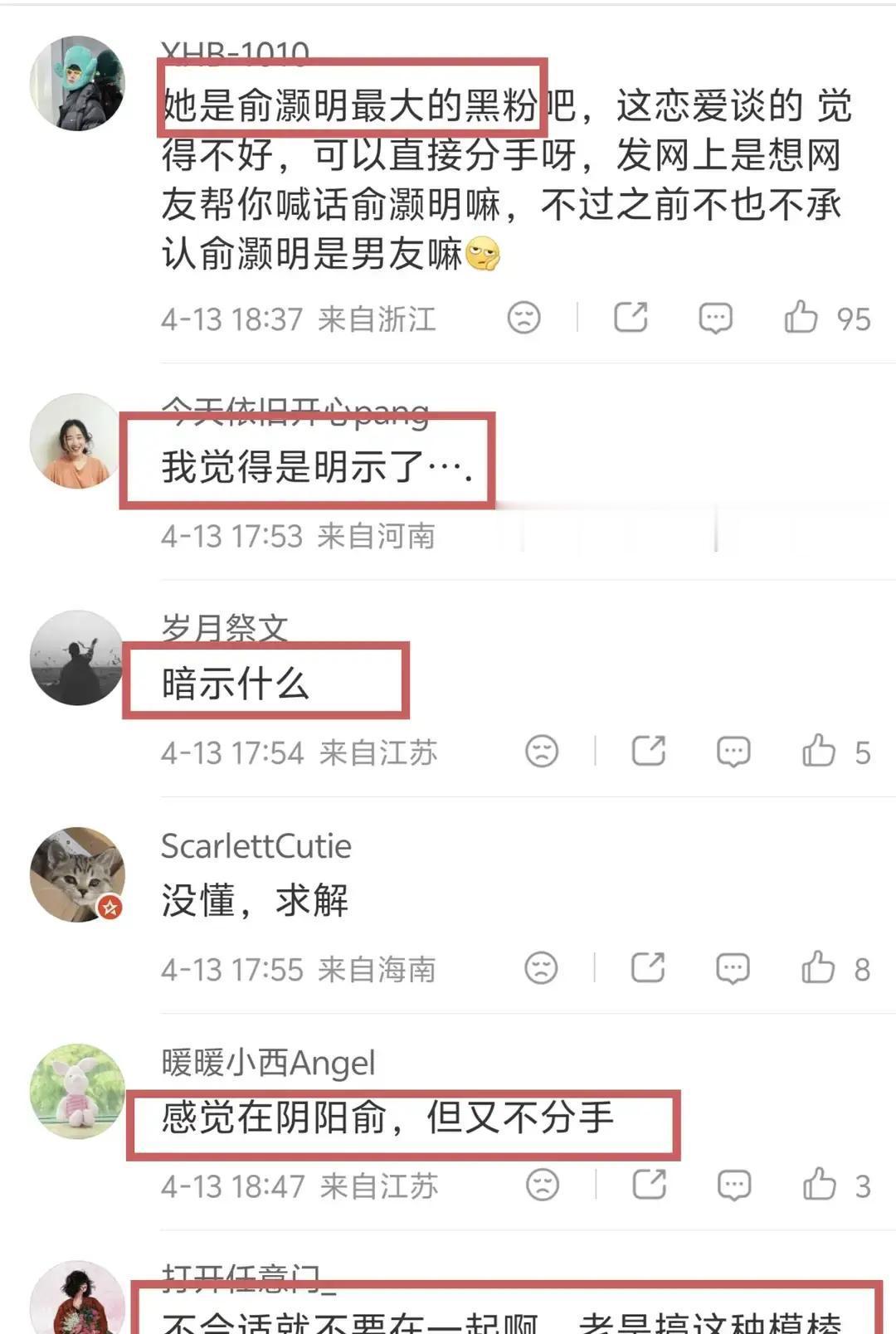 网友秒联俞灏明。