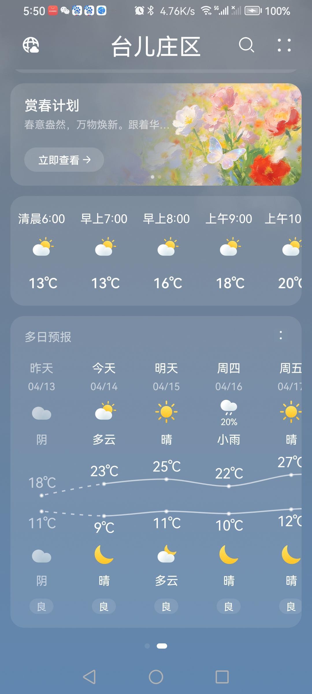 4月14日天气阴,气温融合。