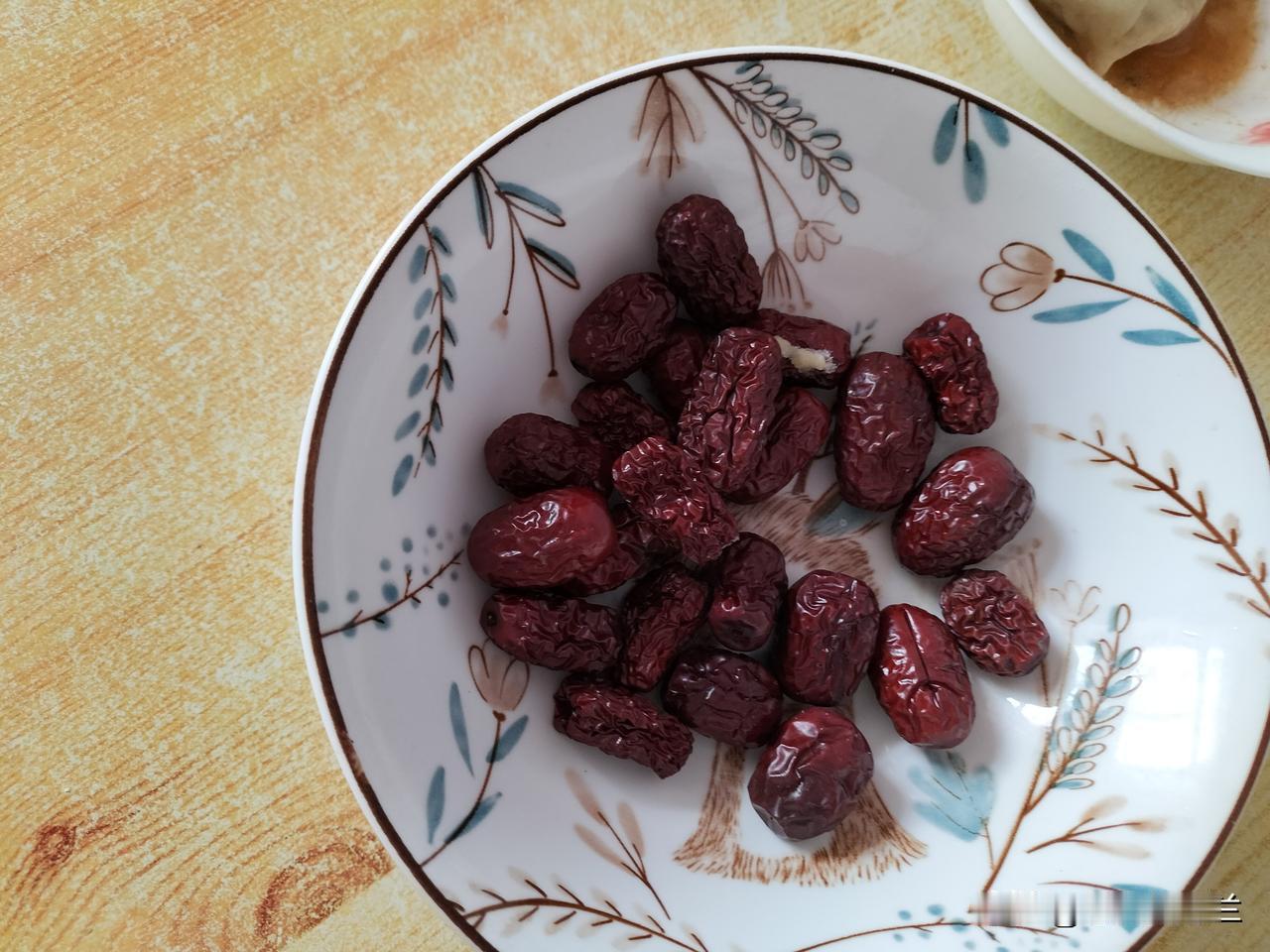今天包了36个饺子,蒸锅里,剩下一点地方,我想起来家里还有一点红枣,又拿了一点红枣蒸上了。