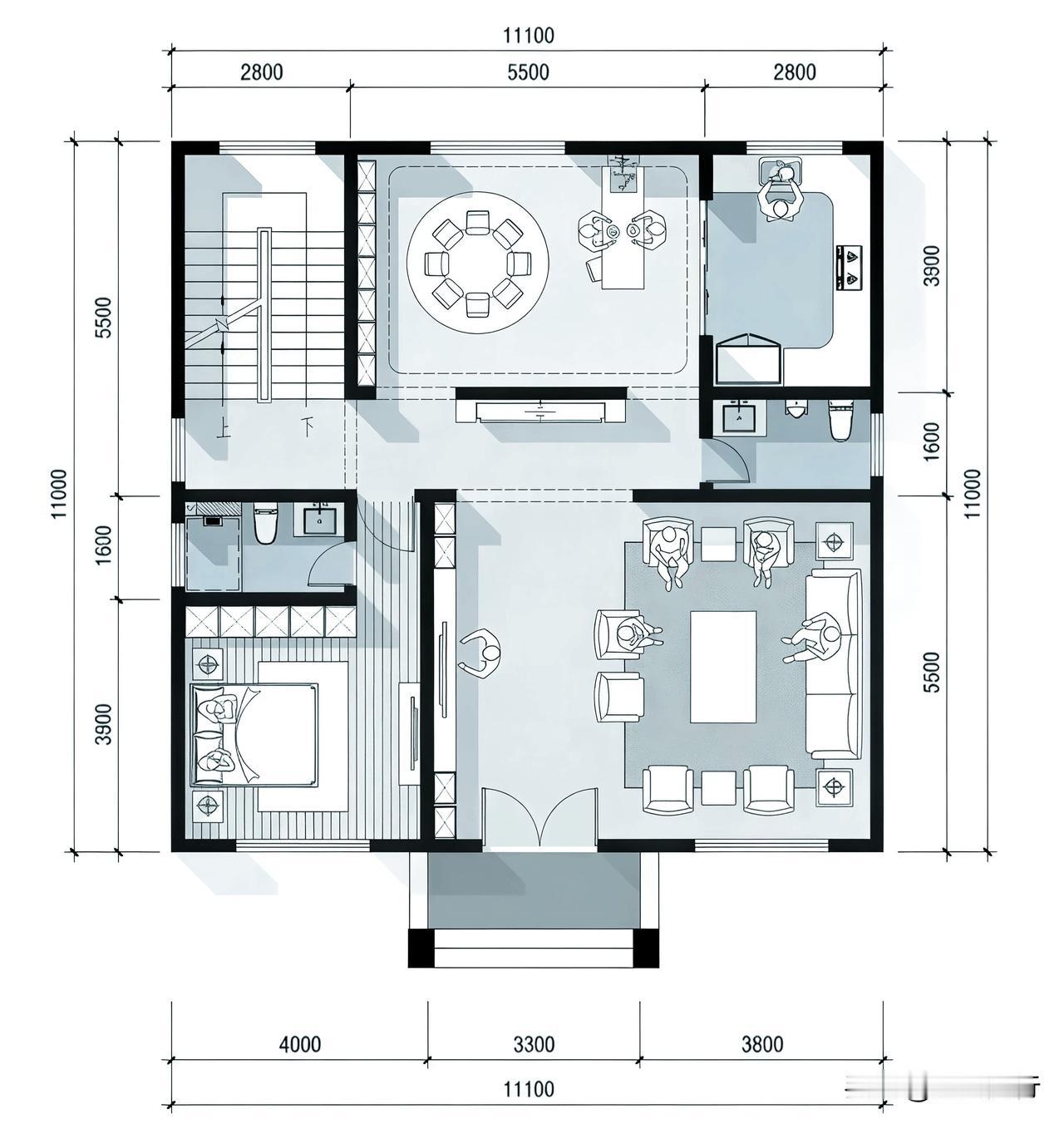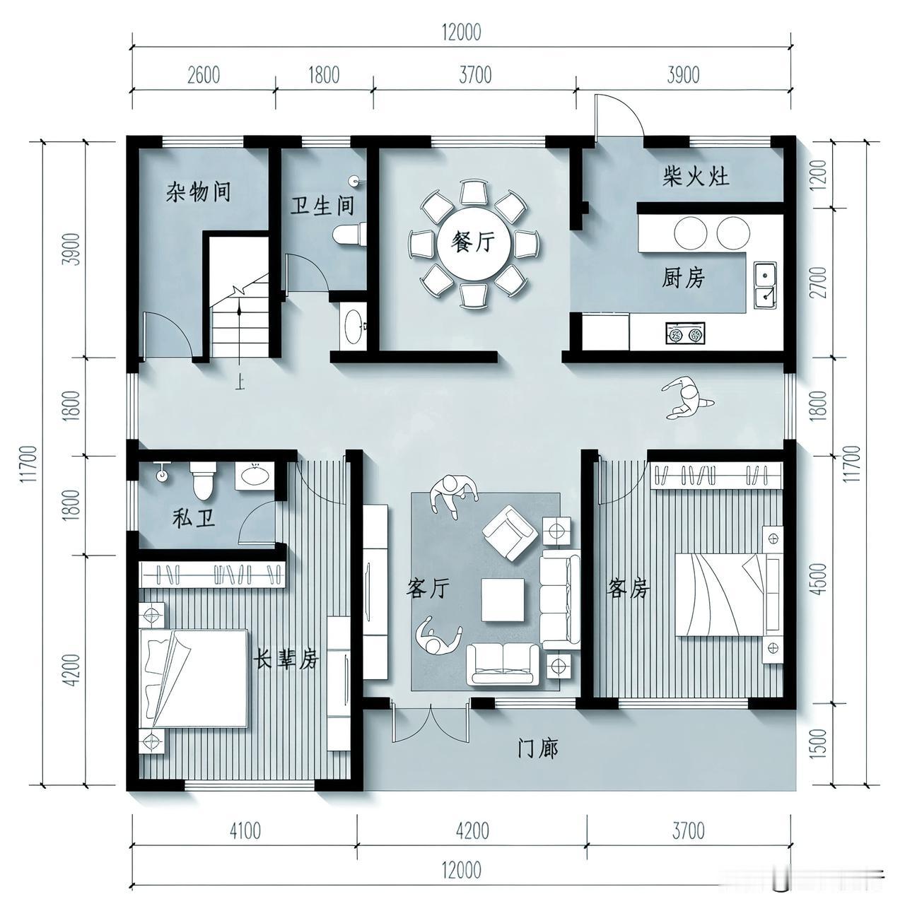 自建房户型布局根据宅基地尺寸,周边邻居建筑及单独情况,开窗受限情况,家庭需求不同布局也不同。