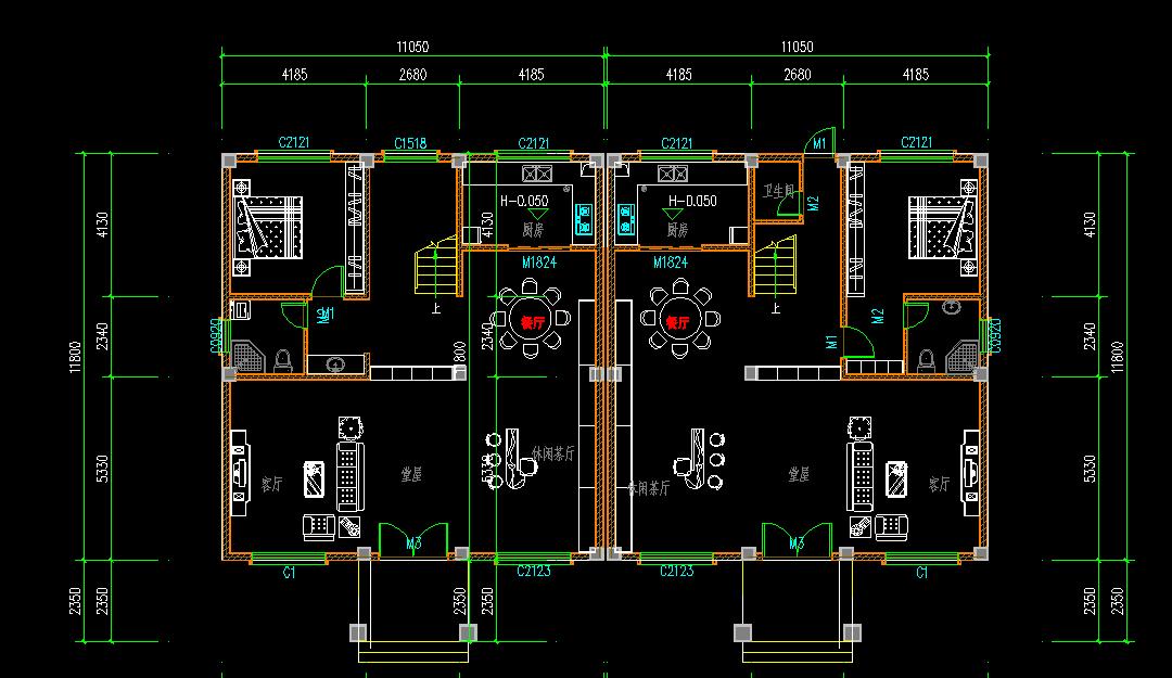 新农村双拼别墅户型图。设计 自建房 农村自建房 农村自建别墅 别墅