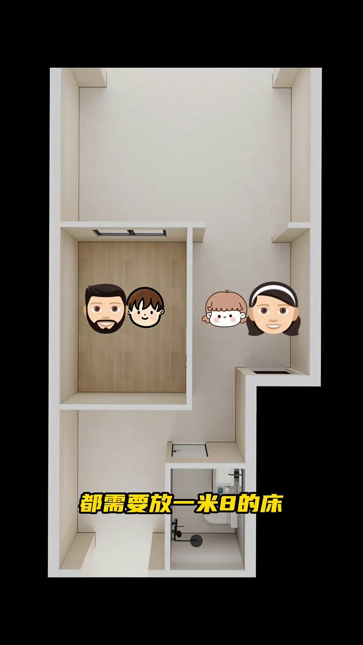 ·只有一间卧室,但是却有一对龙凤胎,因为孩子很小,希望改成两间卧室,爸爸带儿子,妈妈带女儿,都需要放一米八的床。