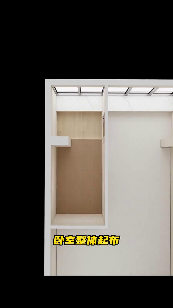 ·下面这里规划出另一间卧室,同样一米八的床,书桌、衣柜该有的都有,缺点就是没采光,所以可以在与客厅错墙的位置改做成玻璃砖,借助到一些间接光线。