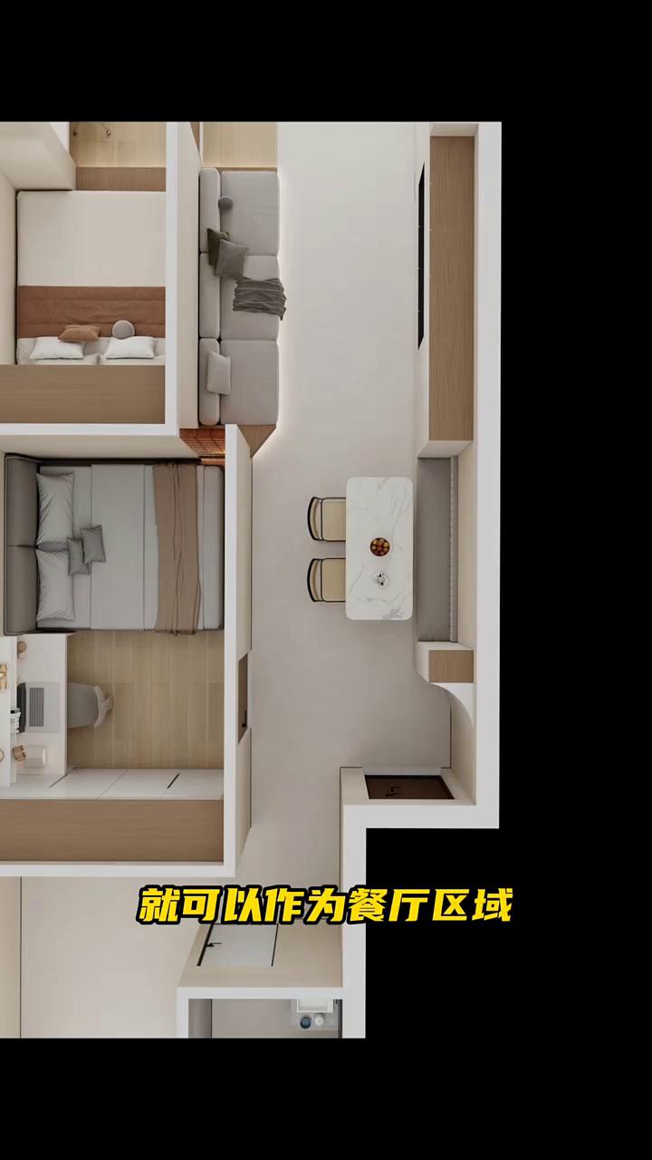 ·客厅的面积相对来说比较宽敞,但是却没有位置放餐桌,只能在茶几上吃饭,太矮了不舒服,所以我对这套户型的改造是这样的。