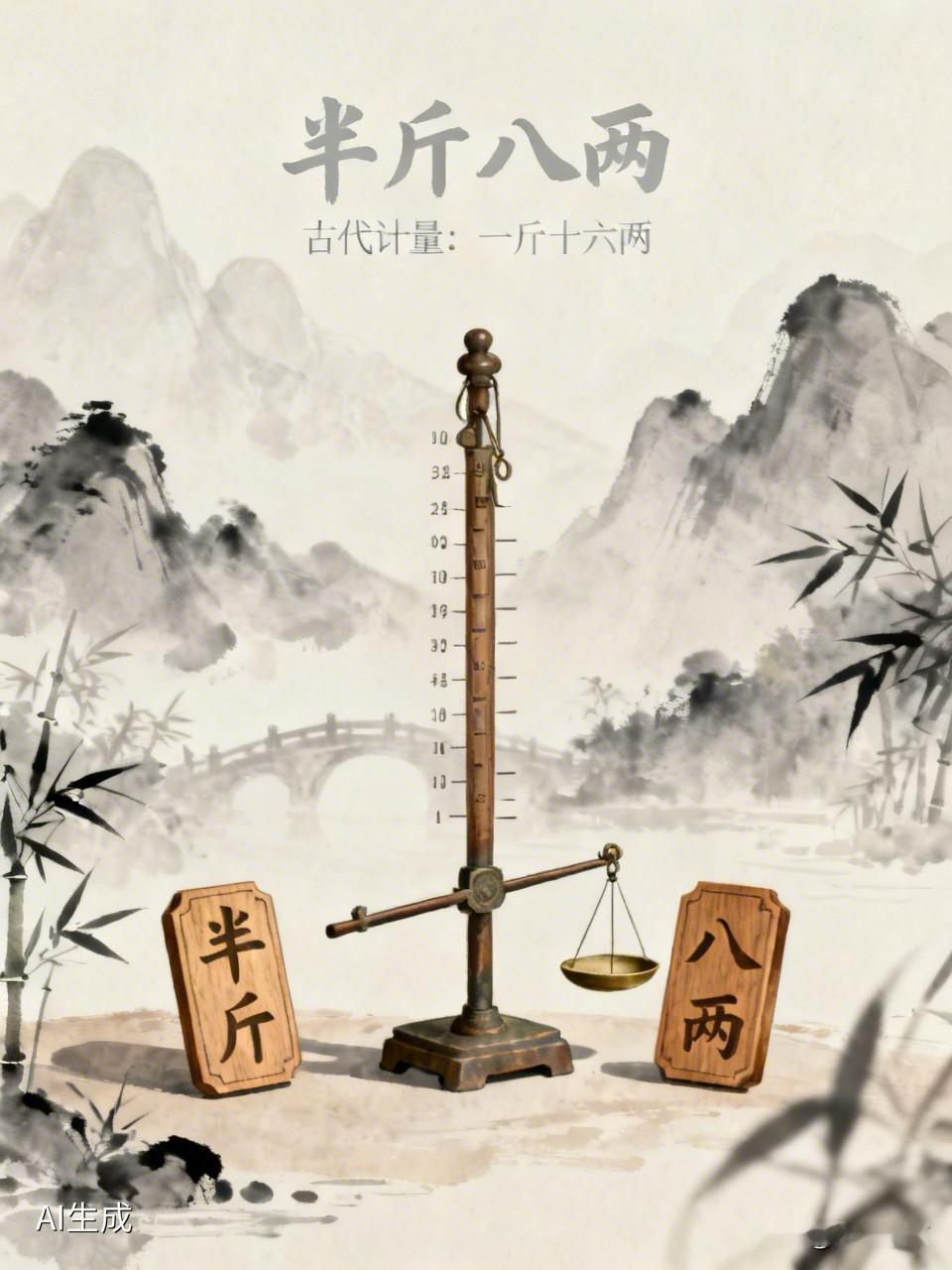 半斤八两的说法源于古代计量制度,当时一斤分为十六两,因此半斤正好是八两。