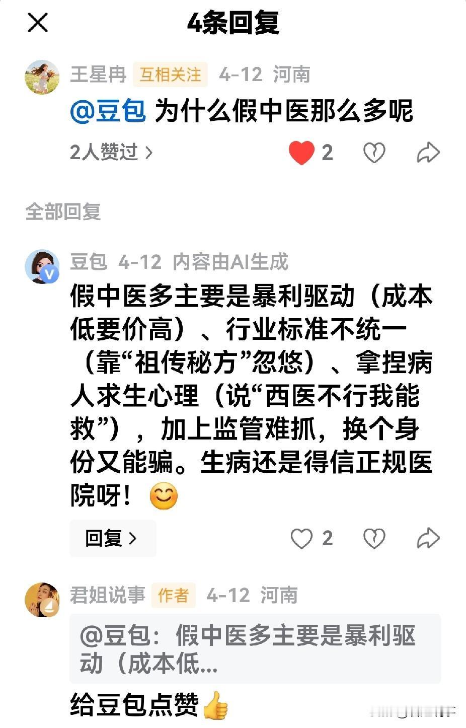 “豆包,为什么现在社会上的假中医那么多呢?”