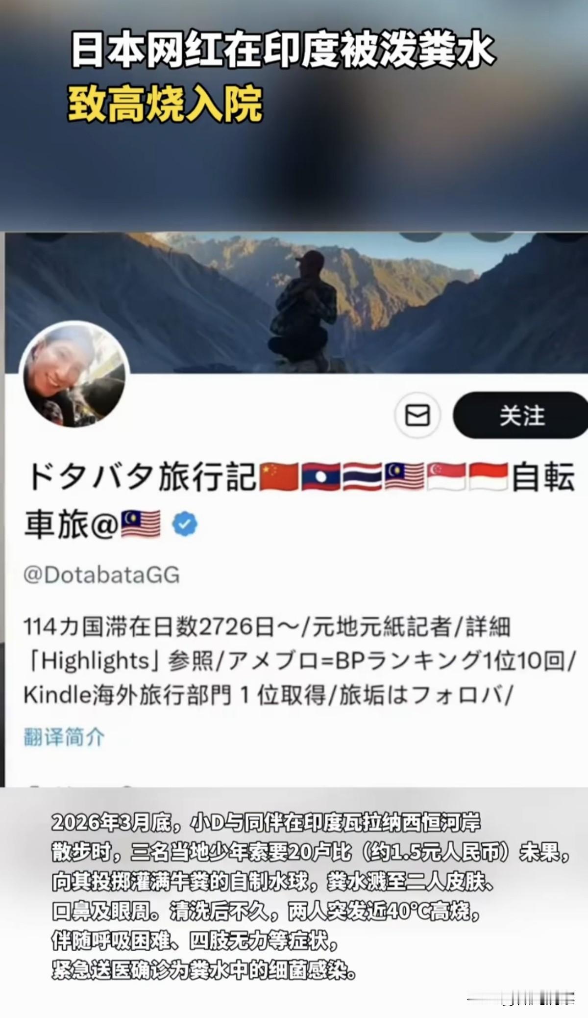就因为1块5的小费,日本网红在印度被泼牛粪发烧进医院,真的是离谱又解气! 事情的