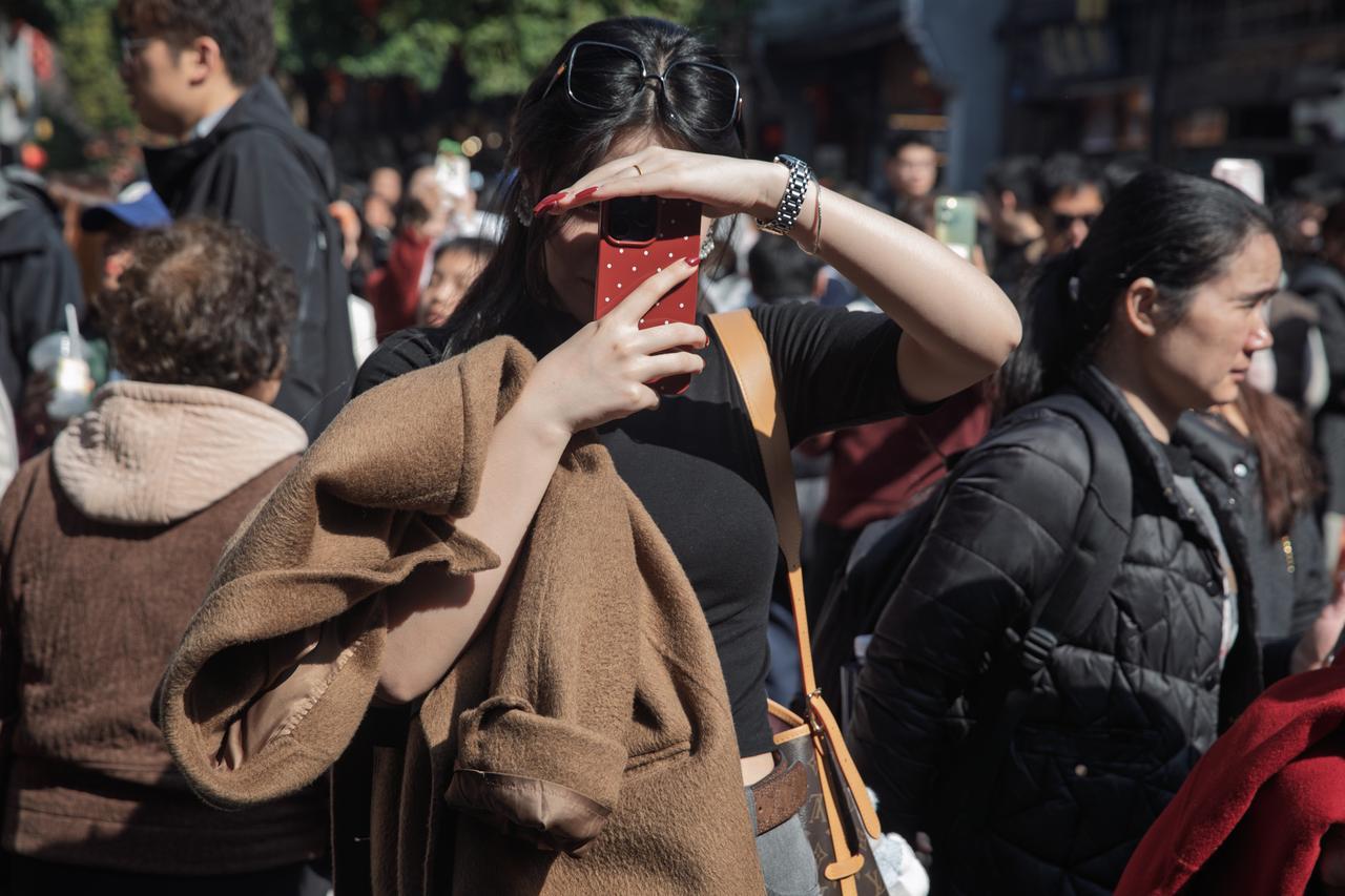 在喧嚣的人潮中,寻一处心形树下的静谧,