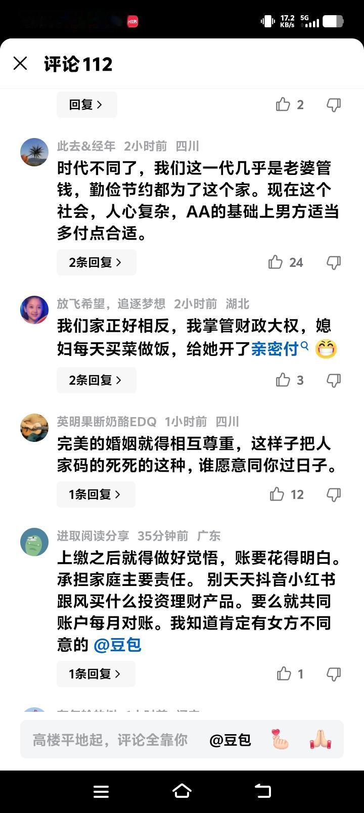 许多网友分享身边故事:有人前妻十年婚姻欠债三十万,有人现任三年存款十五万还操持家务。对比之下,婚姻的幸福与否,从来不在“谁管钱”,而在“心是否在一起”。当一方将经济控制视为爱的证明,另一方却在沉默中失去尊严,这样的关系早已埋下崩塌的引线。