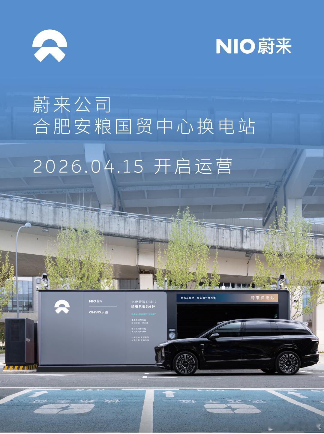 蔚来换电站 | 合肥安粮国贸中心 上线周边3公里覆盖4大核心商圈、13大办公园区、26大住宅群截至4月15日,蔚来已在安徽省布局204座换电站,在全国布局3794座换电站蔚来换电去哪都方便