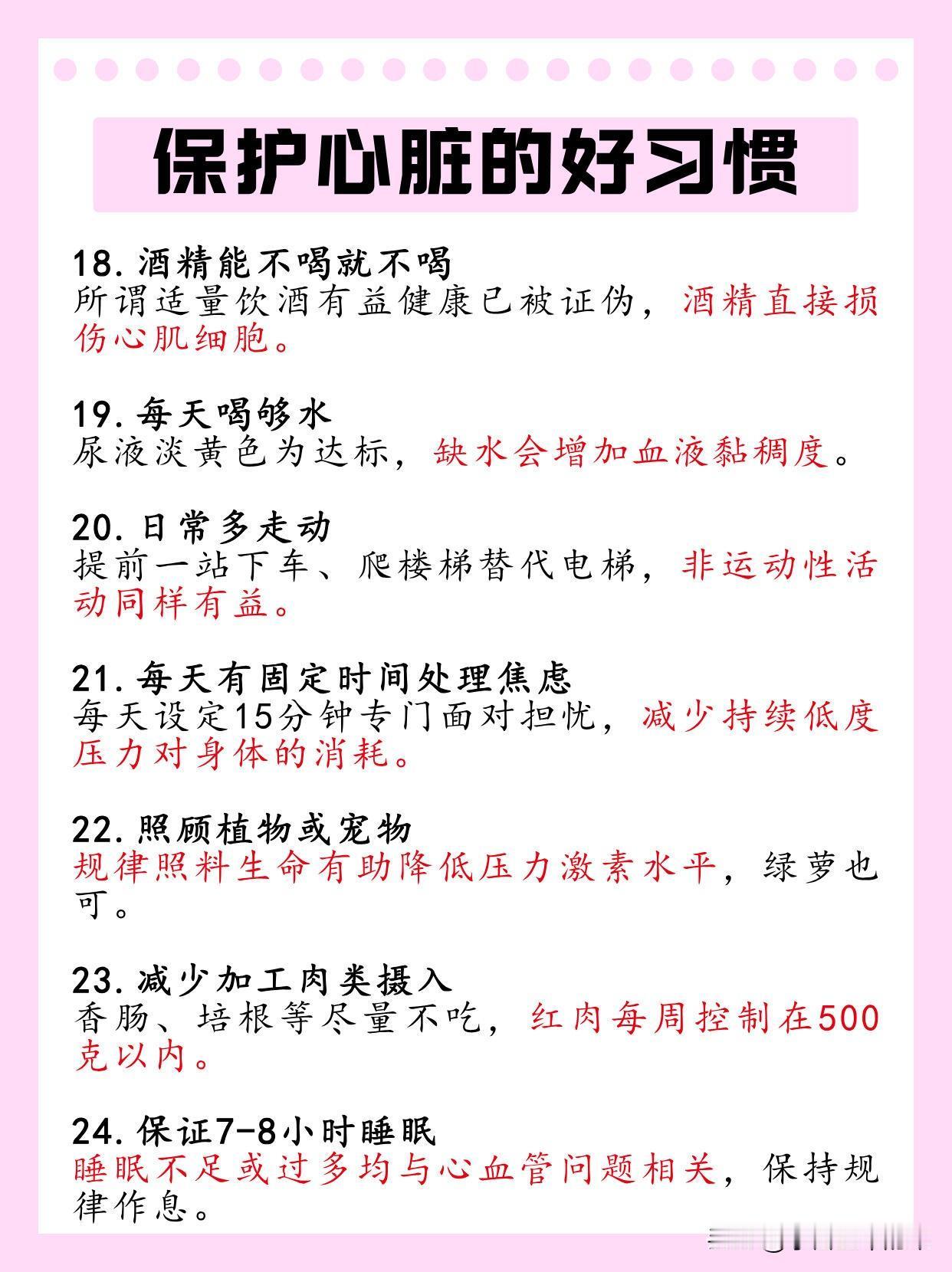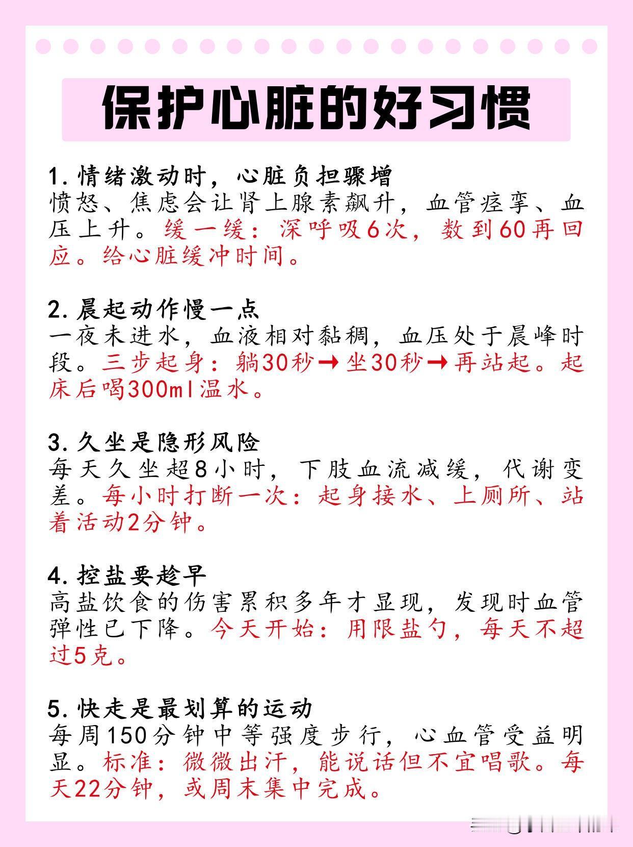 情绪上,激动时先深呼吸6次、数到60再回应,给心脏缓冲;每天留10分钟静心、15分钟专门处理焦虑,减少压力消耗。