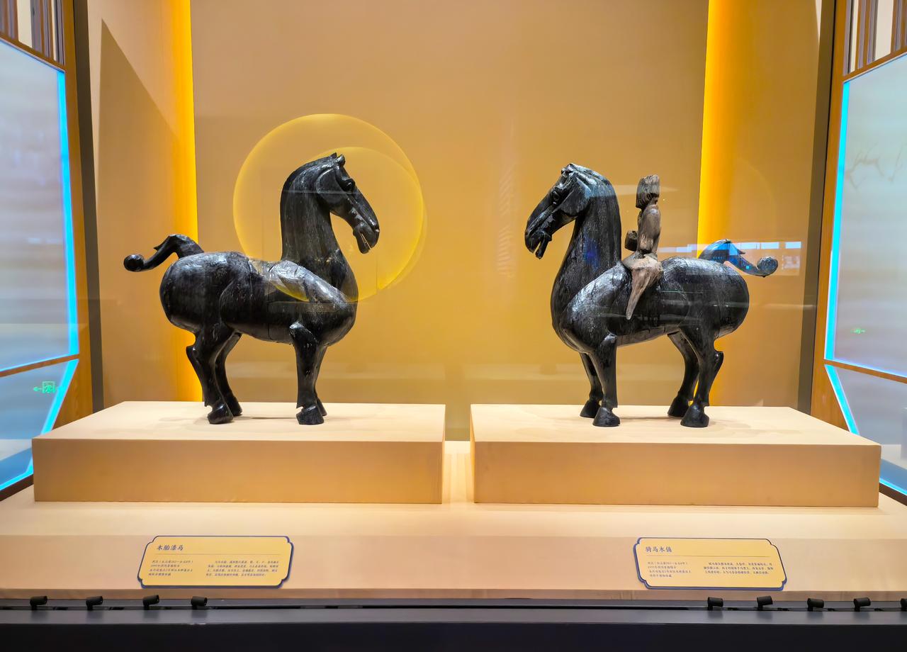 展品不仅包括国家博物馆的馆藏,还包括甘肃省博物馆、甘肃简牍博物馆、秦始皇帝陵博物院、陕西考古博物馆等机构的馆藏。展品包括唐三彩黑釉陶马、《狩猎图》、秦鞍马俑、汉简《传驿马名籍》、西汉彩绘陶马、东汉青铜轺车、《十八骏图卷》等珍品。