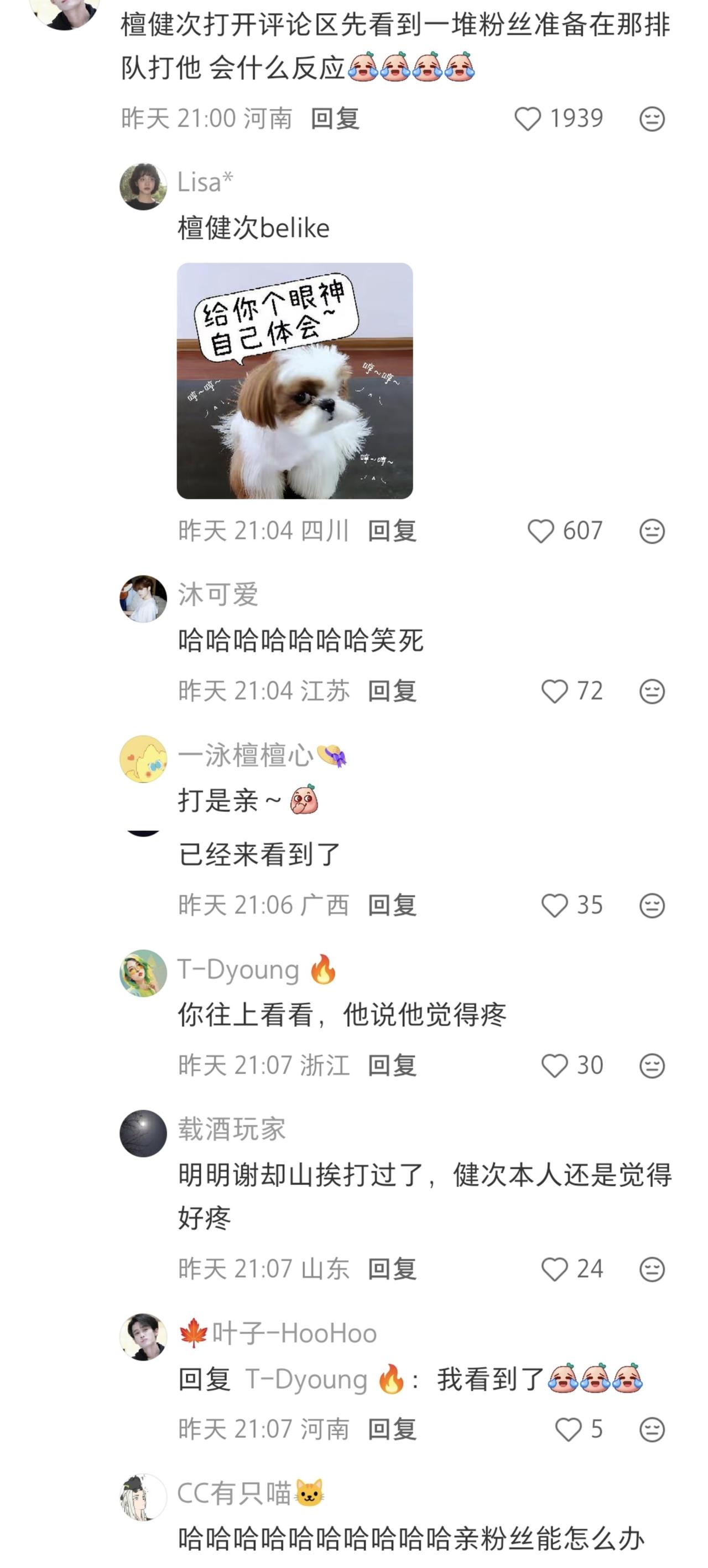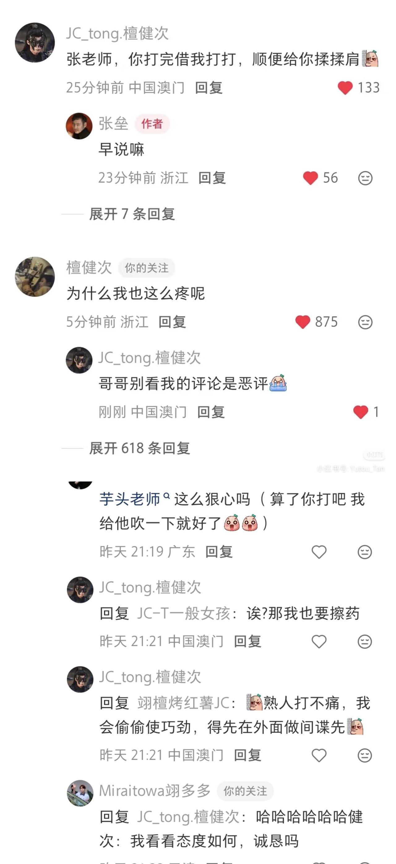 我要笑死了!然后我就看到健次在评论区回复了:为什么我也这么疼呢?檀丝立马心虚的回复:被逮到了 在玩手机!