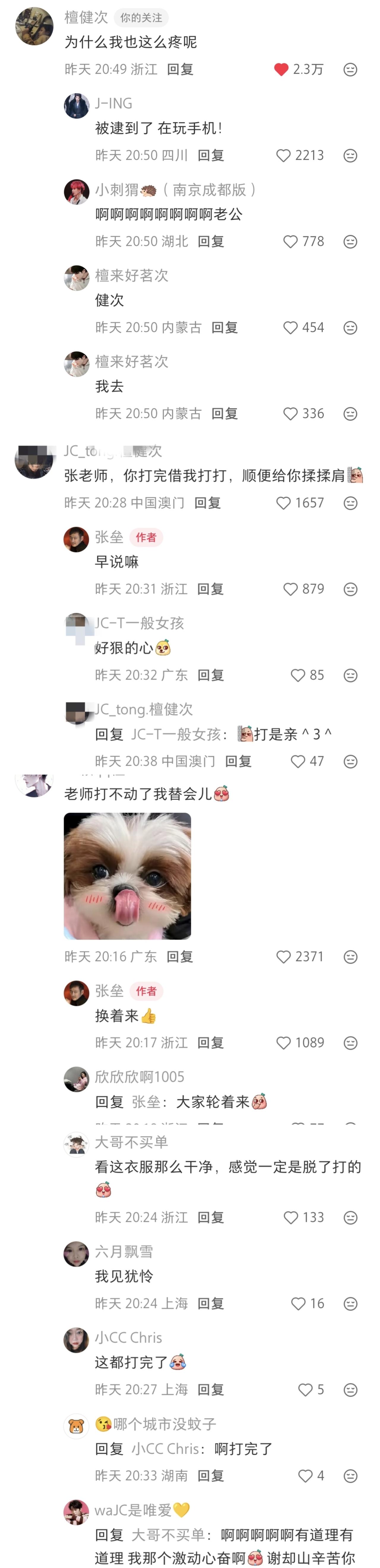 关键是张垒老师还回复了好多小炭火:不,力度你可能掌握不好!老师,家主是趴着挨打的还是跪着?那老师,求你只需透露是穿着里衣还是裸上身挨打?