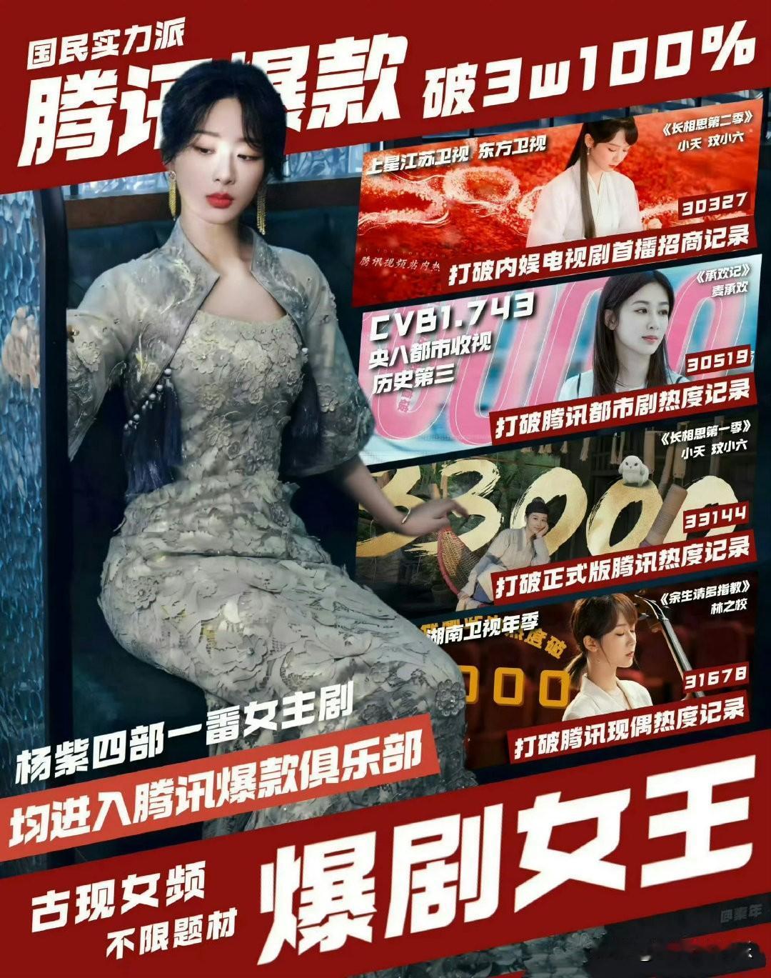 近期腾讯待播剧集中,一众女性角色热度持续飙升,风格各异的女性形象引发全网热烈讨论。楊紫的《国色天香》风彩、迪丽热巴接连解锁《白日提灯》飒爽侠女、《枭起青壤》神秘御姐、《利剑玫瑰》热血女警,三重身份反差感拉满;赵露思在《许我耀眼》中演绎明艳佳人,赵今麦则以《骄阳似我》诠释元气少女,青春姿态各有风采。除此之外,还有刘亦菲《玫瑰的故事》里向美而生的灵光、陈都灵《雁回时》的清冷温婉、田曦薇《逐玉》《子夜归》的灵动娇俏、周也《锦月如歌》的英气飒爽,以及赵丽颖《小城大事》里极具烟火气的市井女性,每一个角色都立体鲜活、亮点满满,堪称颜值与演技双在线,你心中的角色top1是谁呢?腾讯剧集预排播