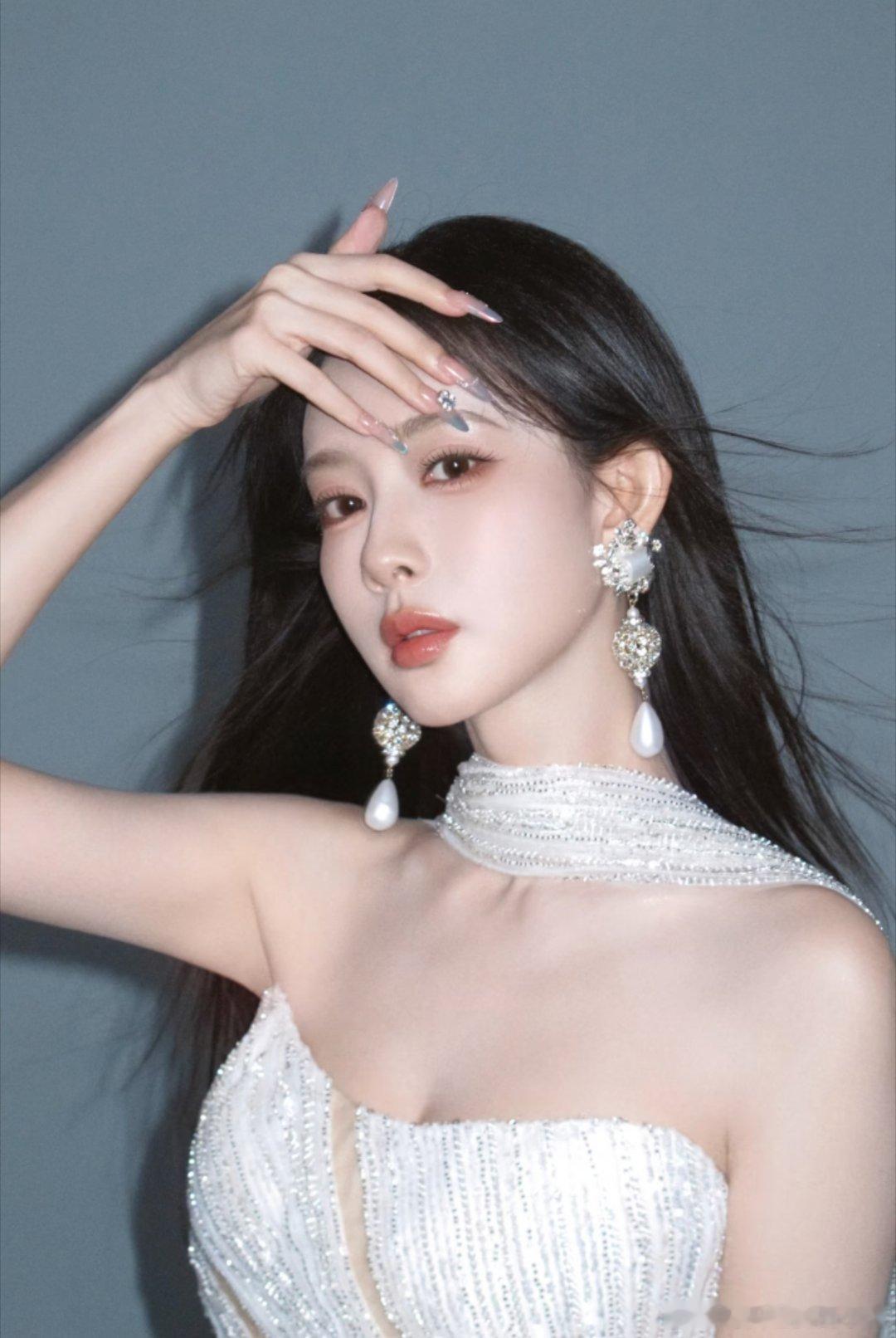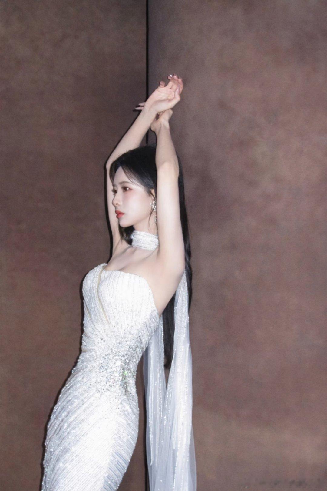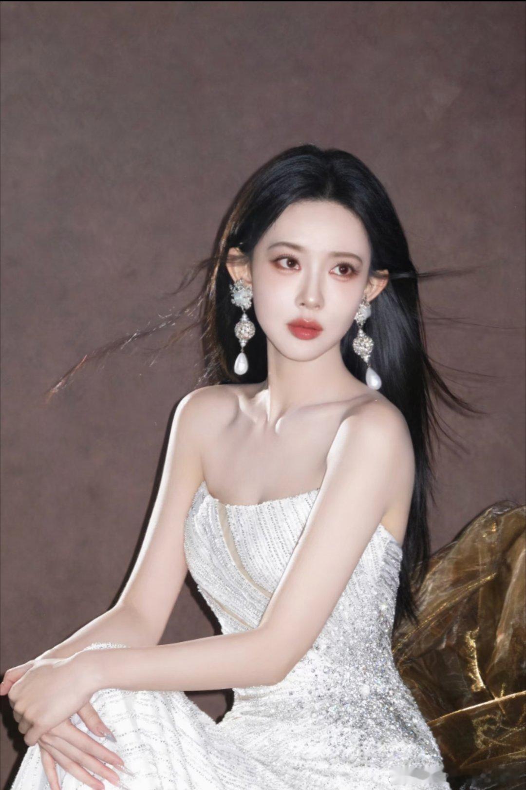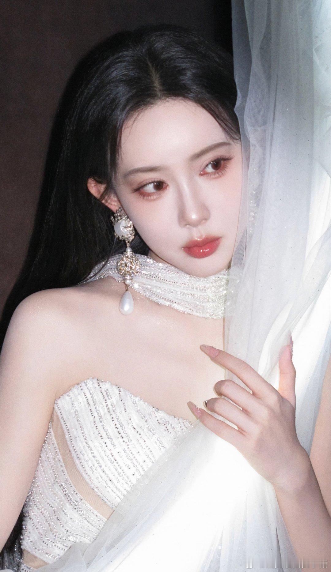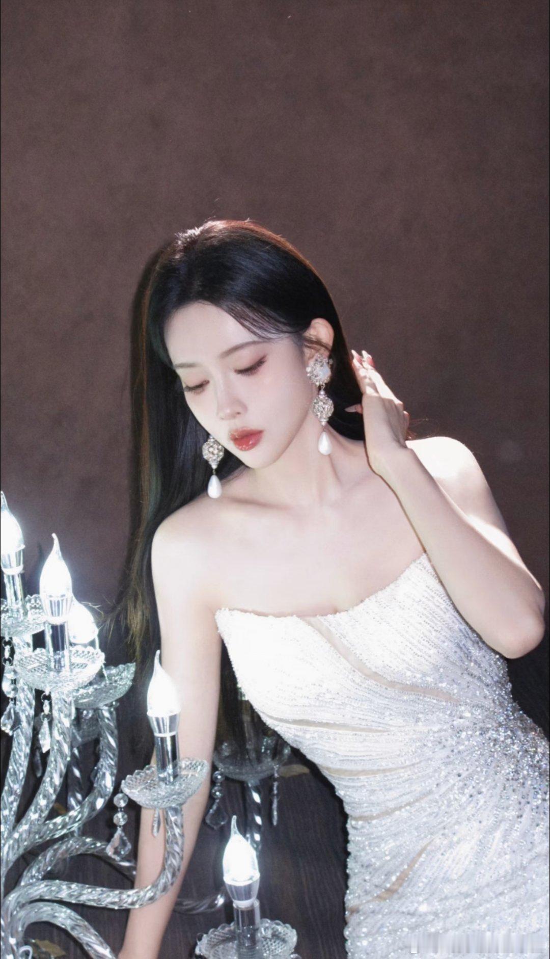 美女壁纸~孟子义,光影织就浪漫,碎钻缀满温柔,一袭抹胸闪钻白裙,搭配珍珠钻饰耳坠