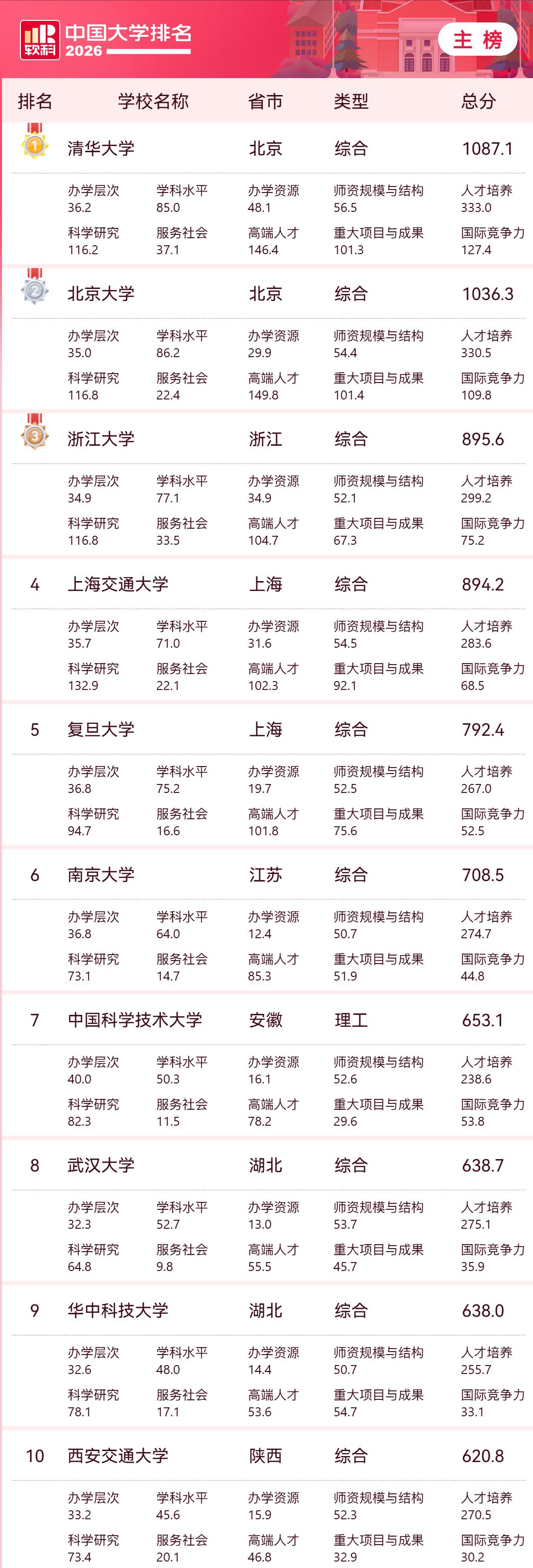 2026中国大学排名出炉,有三个没想到: 1、没想到浙江大学依旧排在第三,仅次