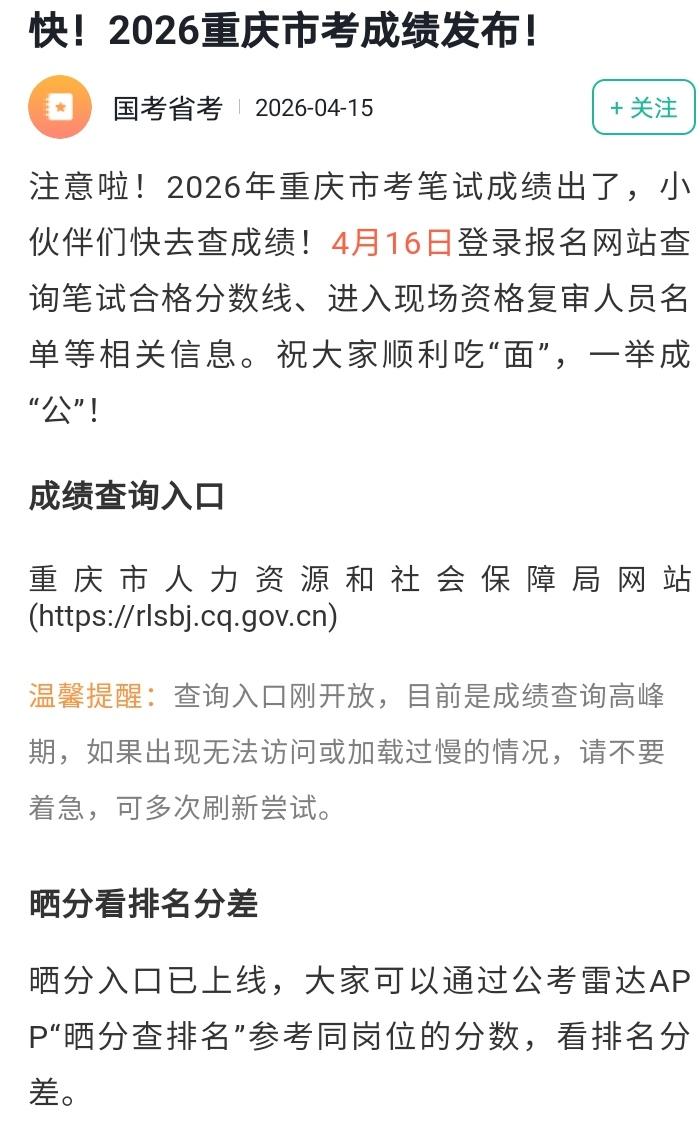 重庆市考成绩今日出炉了,不过又是一次失望的等待。 女儿报考的重庆市大足区市场监管