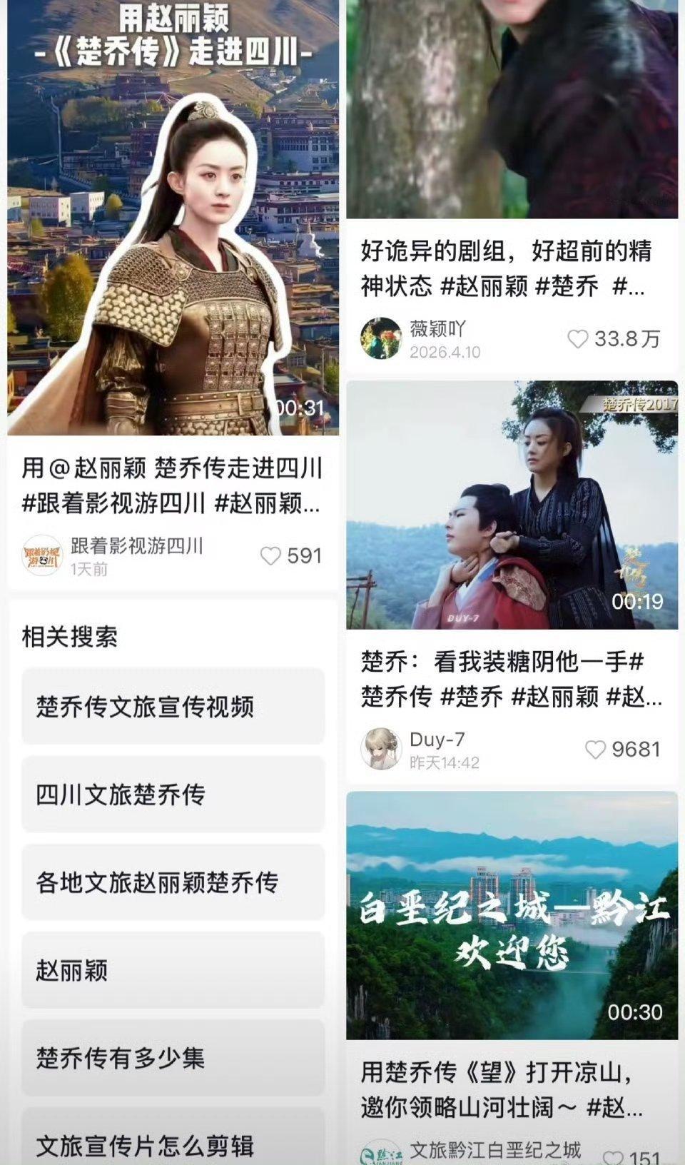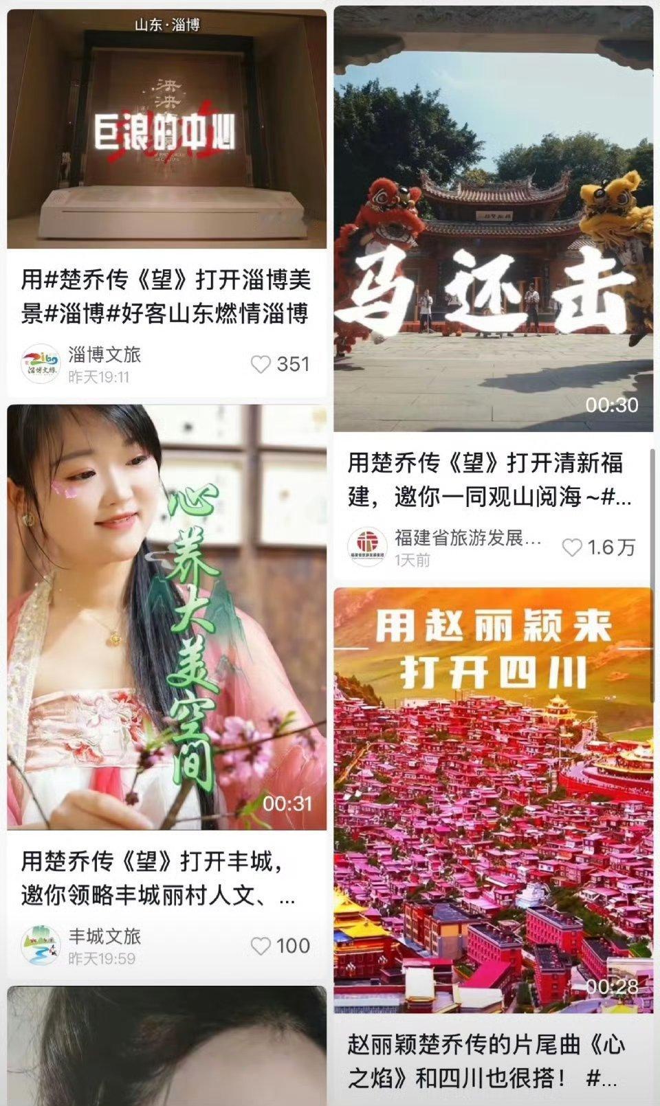 赵丽颖楚乔传ost爆了,各地文旅都在用《楚乔传》的主题曲《望》,在下沉平台刷屏了