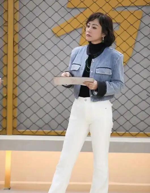48岁郝蕾剪款锁骨卷发嫩似少女,穿短牛仔搭白裤子,网友惊呼没认出来