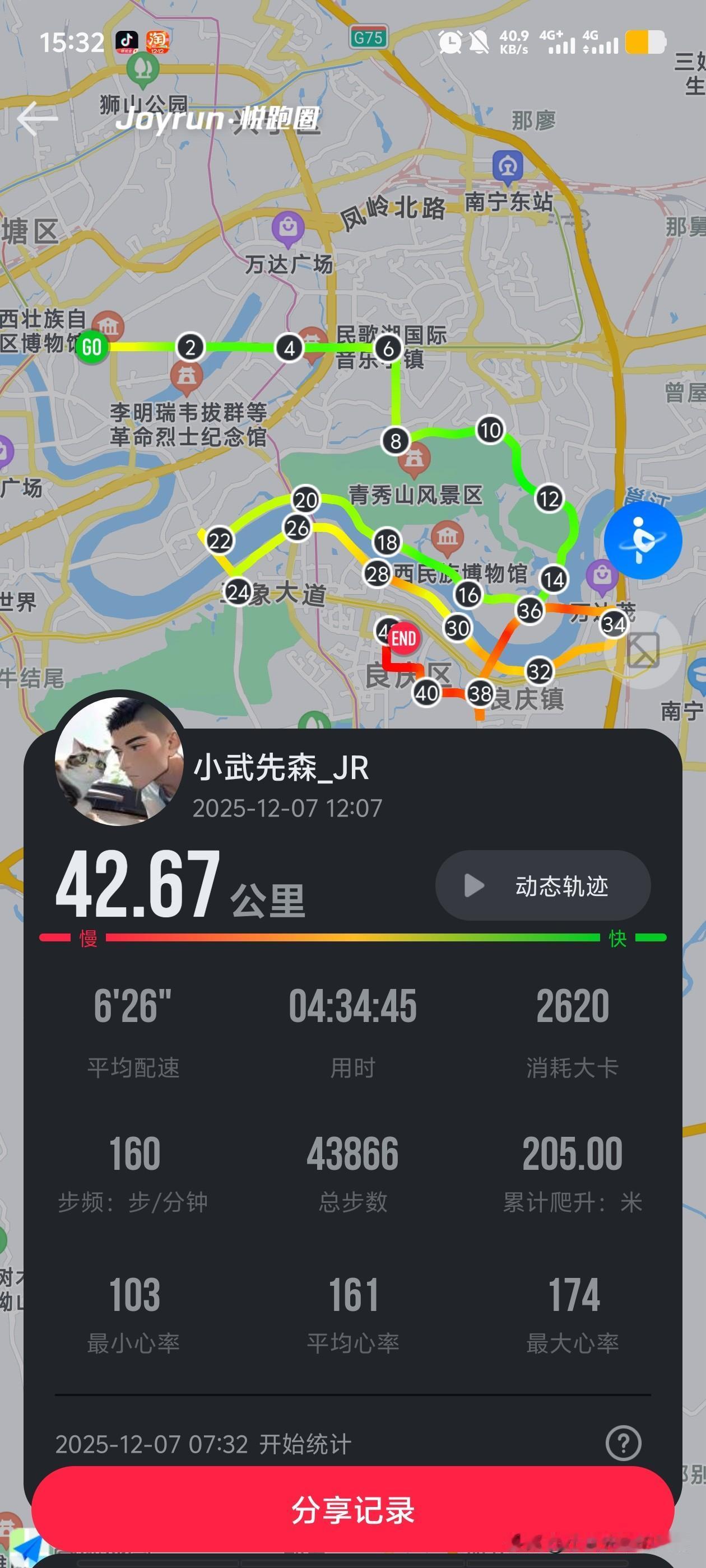 今天体验下来,南宁马赛道确实不是适合pb赛道,好像连续下了几次坡,过了三次桥,那个打坡度不是很大,但是很绝望一眼看不到头,遇到这样的情况我是选择了走路。