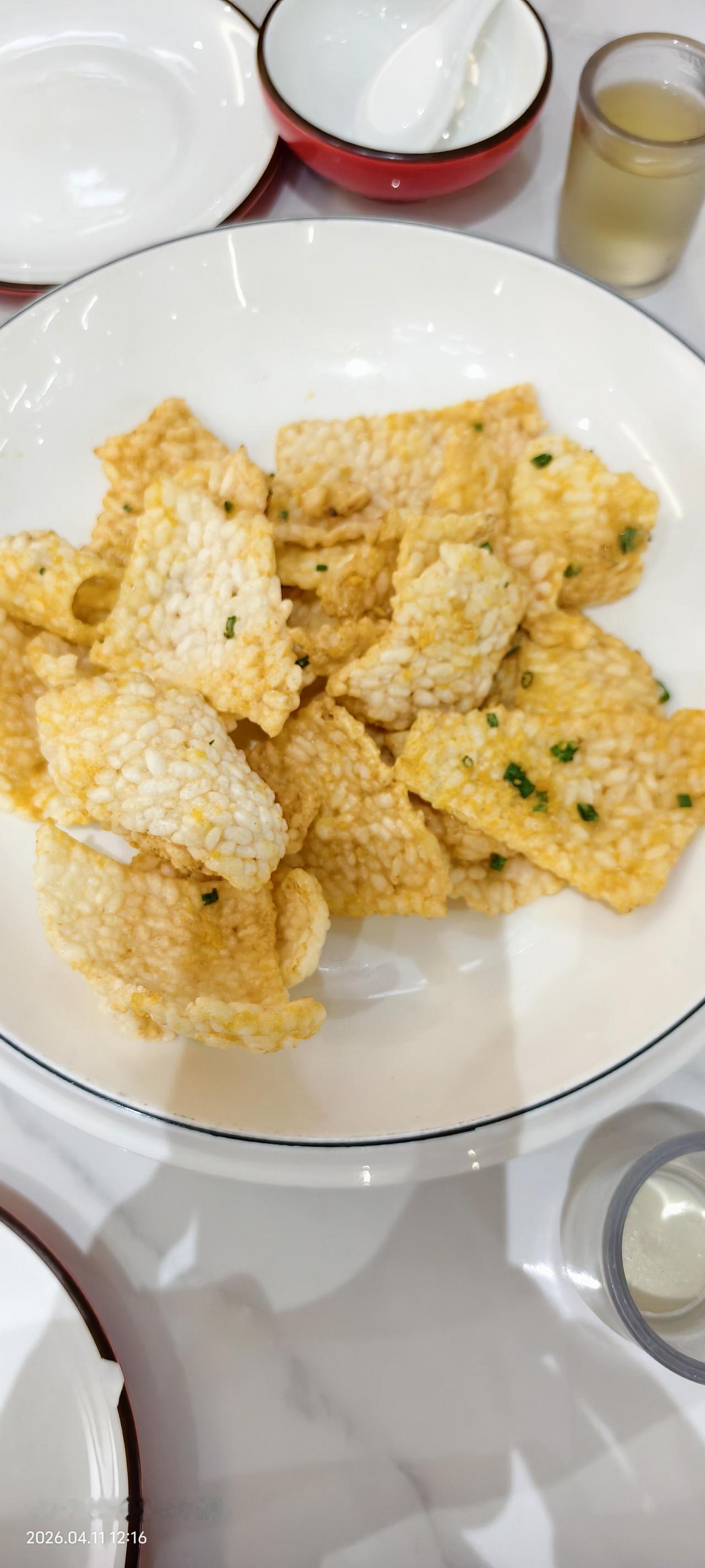 蛋黄锅巴是意外之喜,金黄酥脆,咸蛋黄沙沙地裹在上面,咬一口咔嚓作响。