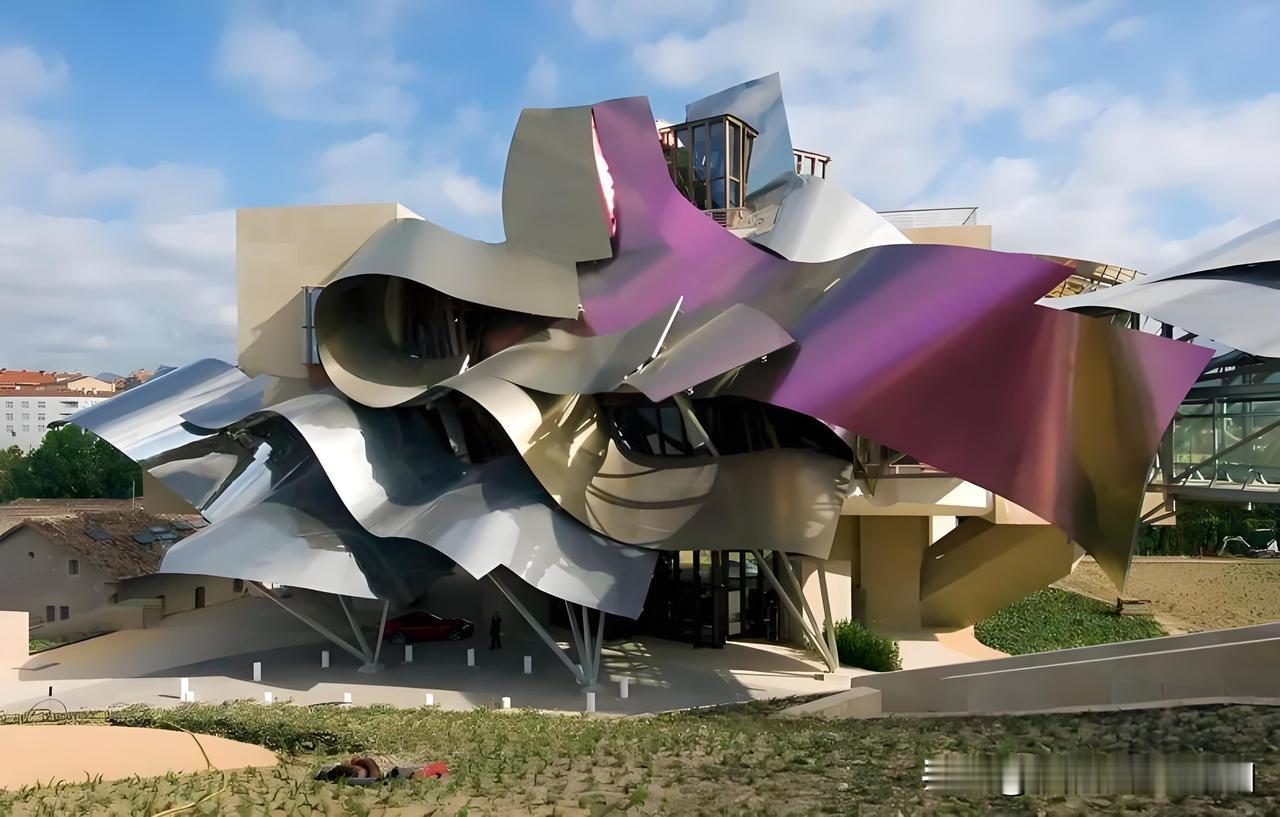 他不爱用大理石、花岗岩打造精致表皮,反而偏爱波纹钢、胶合板这些廉价工业材料,早期甚至用铁丝网做装饰;他抛弃对称美,把建筑拆成碎片再拼接成扭曲形态;后期,钛金属和不锈钢成了他的专属颜料,打造的曲面建筑在光影下质感多变,像活的雕塑。