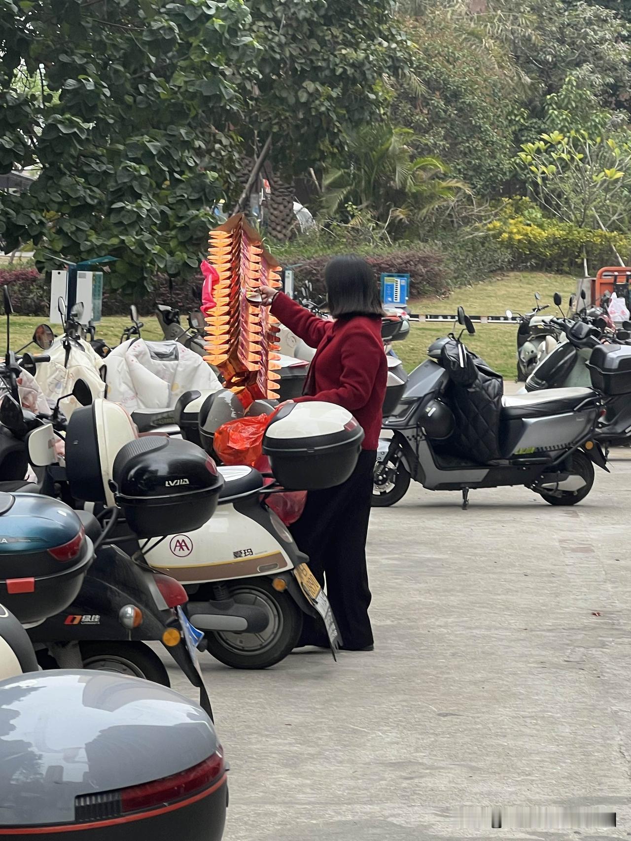此时,全城到处都是鞭炮声,此起彼伏。走在小区的散步道上,只见快递员飞快地赶路,车子后面,堆满了金色的元宝。