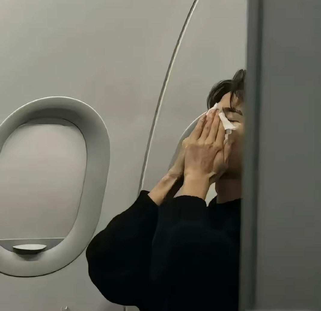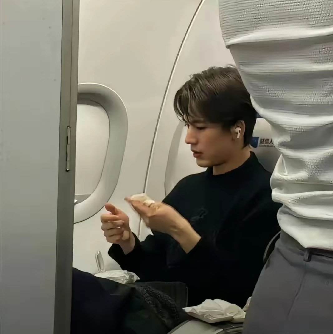 飞机上张凌赫这可是纯素颜的,长得白皙干净,你看哪个明星化妆了敢拿个湿纸巾一顿乱擦