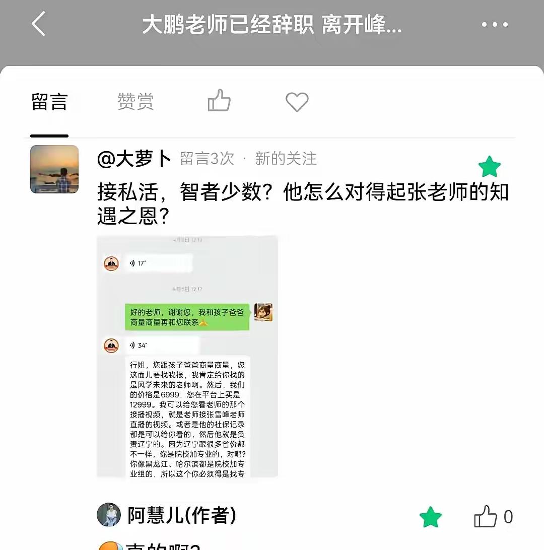 如果网传截图真的,那离职那位老师未来也会风雪交加,日子不太好过!哪个老板愿意用小人?