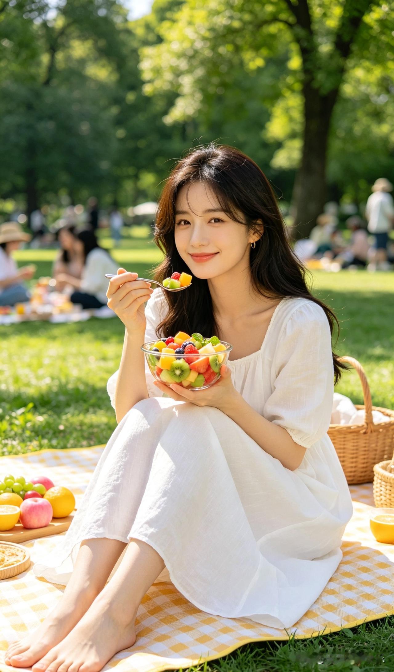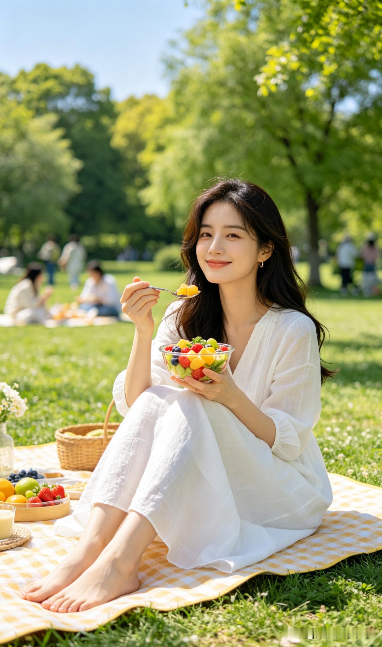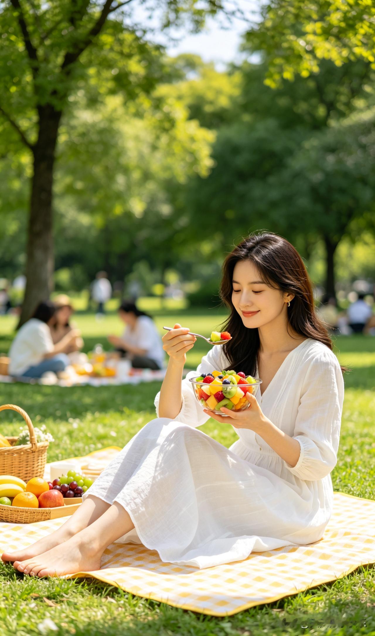 ai宝妈在公园草坪上吃水果ai宝妈 宝妈ai ai正能量宝妈 ai辣妈 ai母女日常 AI女性成长 AI母爱