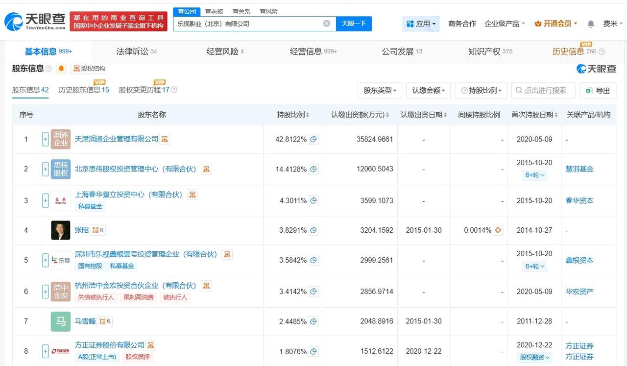 天眼查法律诉讼信息显示,近日,乐视影业(北京)有限公司新增一则股权冻结信息,被执行人为杭州浩中金宏投资合伙企业(有限合伙),冻结股权数额2856万余元,执行法院为北京市第一中级人民法院。