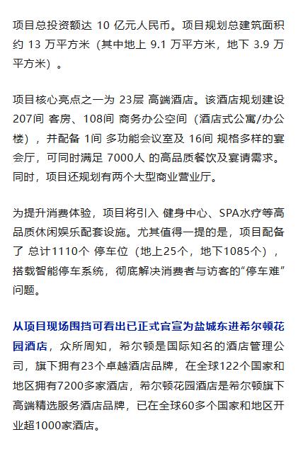 盐城这里,迎来首座希尔顿花园酒店!!盐城盐都区城西小马沟生活广场项目进展顺利,该