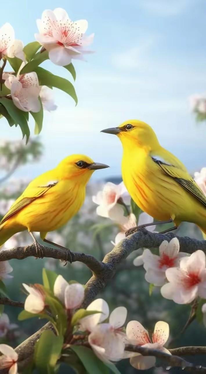 鸟语花香 碧水悠悠绕岸流, 芳草萋萋鹦鹉洲。 南来北往天涯客, 尽向枝头唱自由。