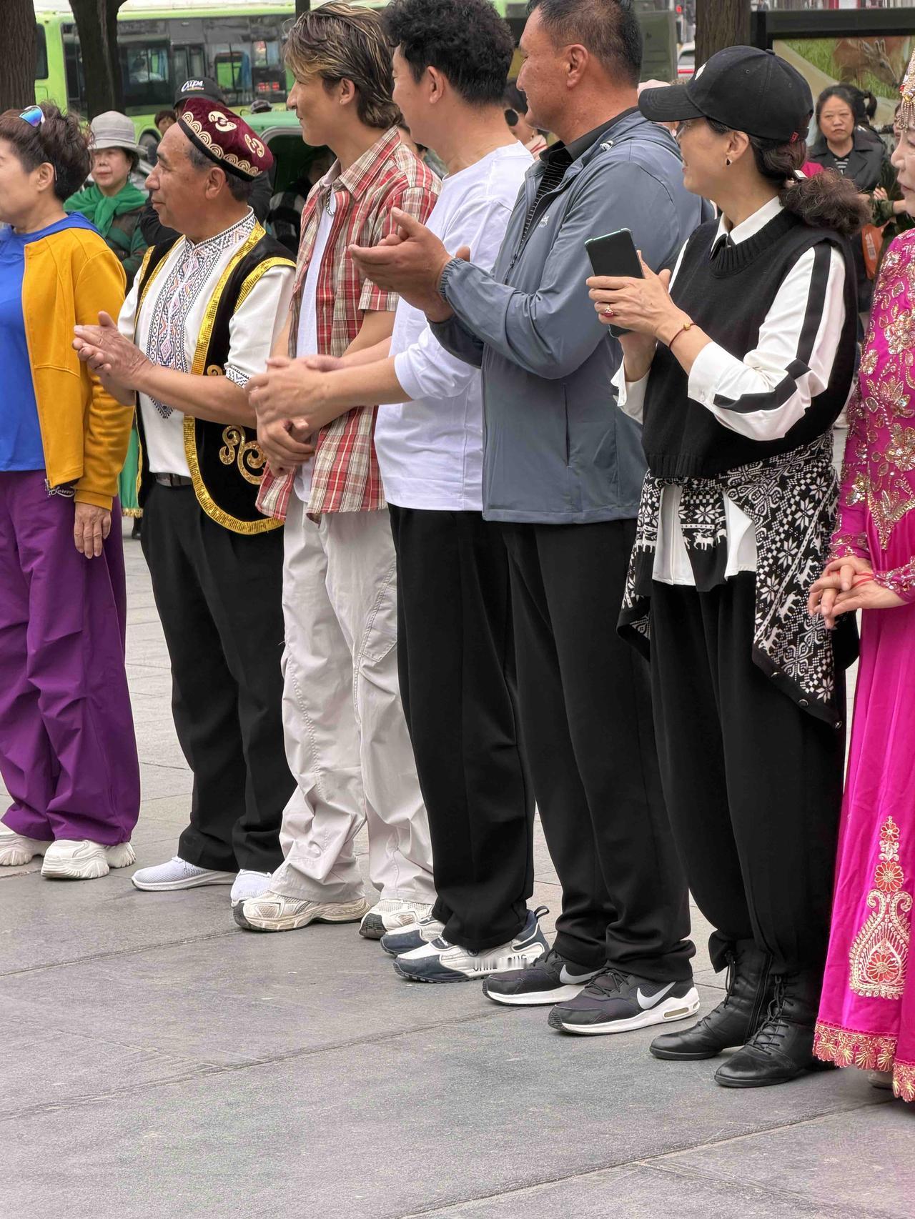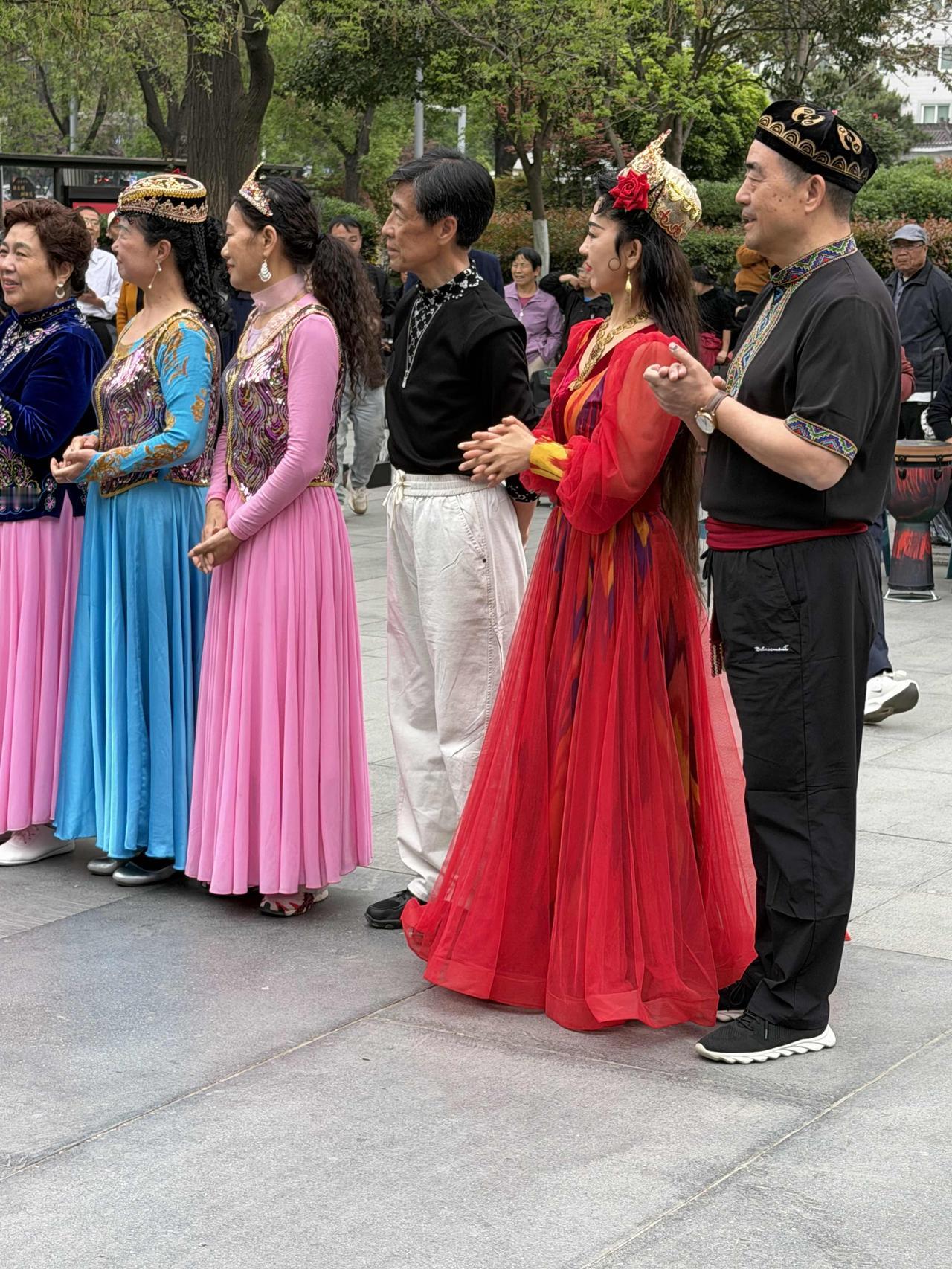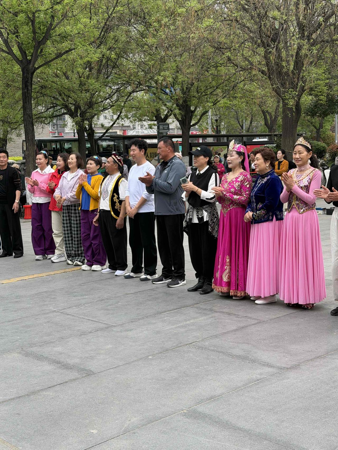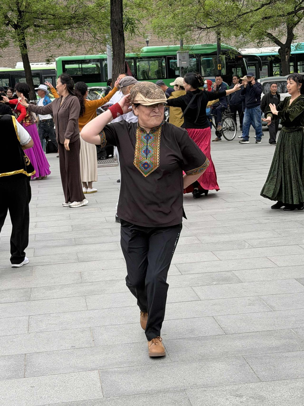 整个大东门新疆舞场,似一片欢乐的海洋,让众舞友开心不已!