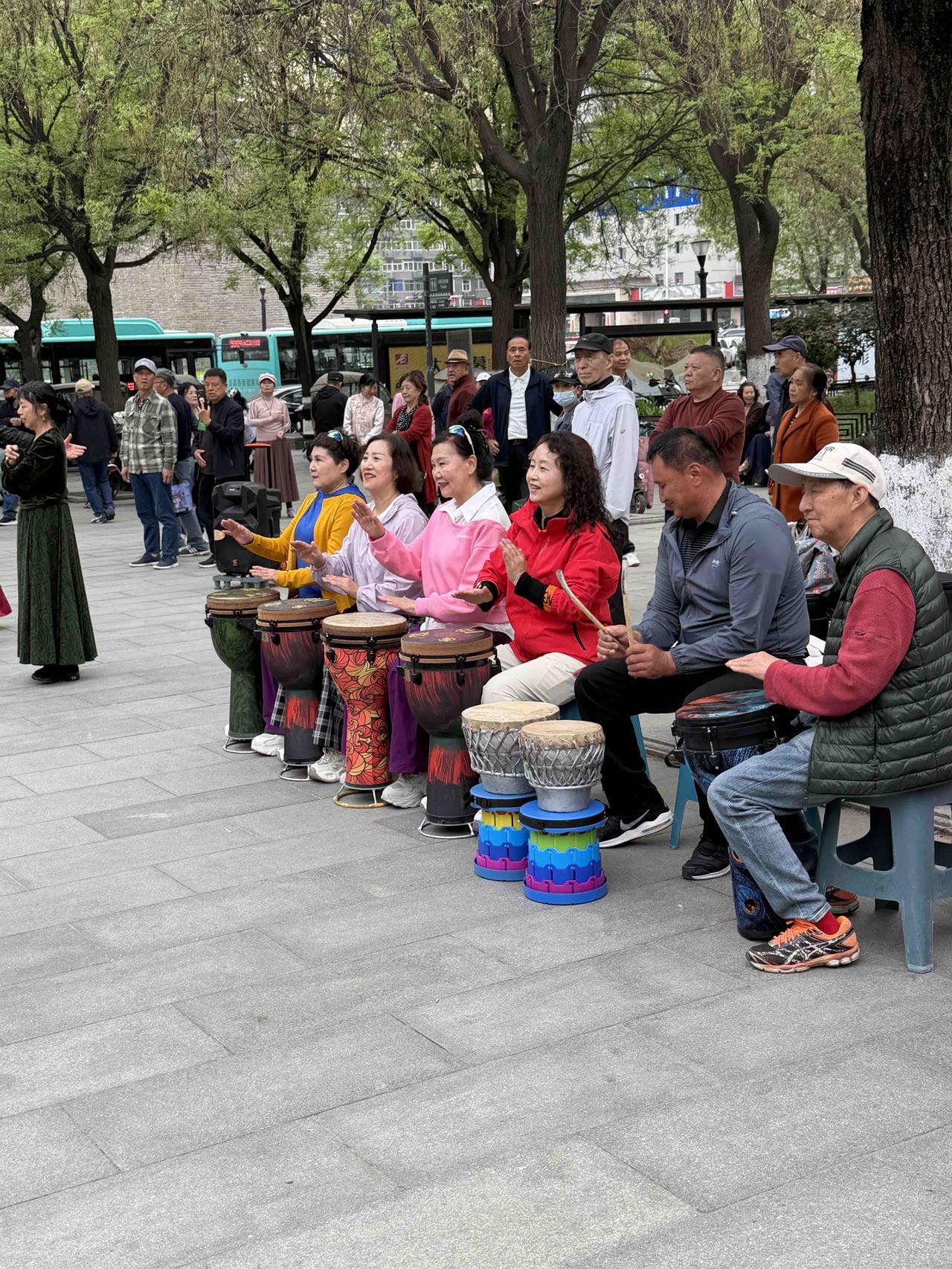 新疆巴音布鲁克原野鼓乐队,也来舞场展示和助兴。