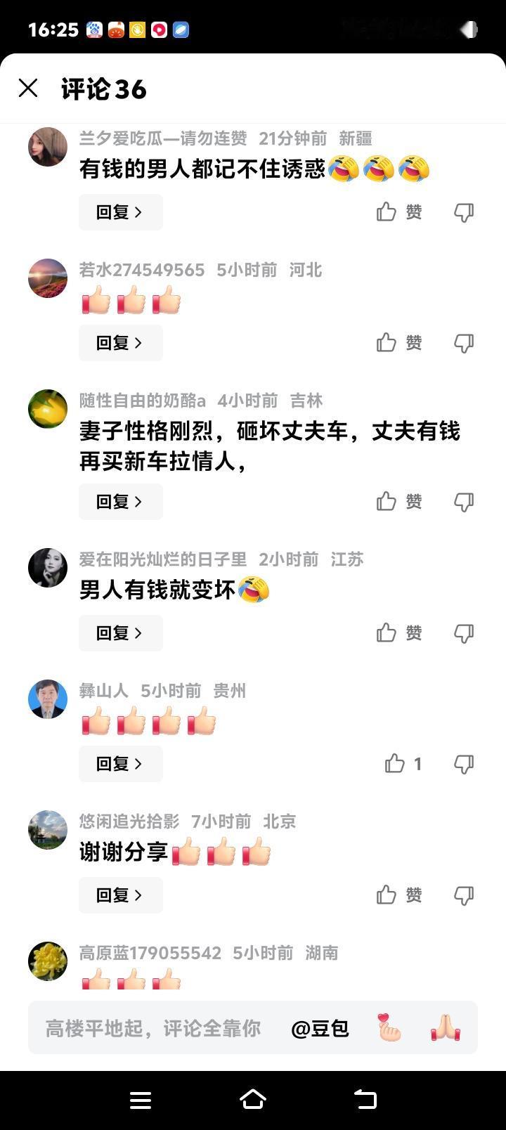 砸下去的是铁锤,溅起的却是无数已婚者心中的惊涛骇浪。评论区瞬间炸锅:“男人有钱就变坏,老话不假!”“砸车不解气,但真解恨!”“这是把多少女人的隐忍和愤怒,一锤子砸出来了啊!”情绪在共鸣中不断发酵,每一个点赞和转发,都像是对婚姻中那份忠诚底线的无声捍卫。