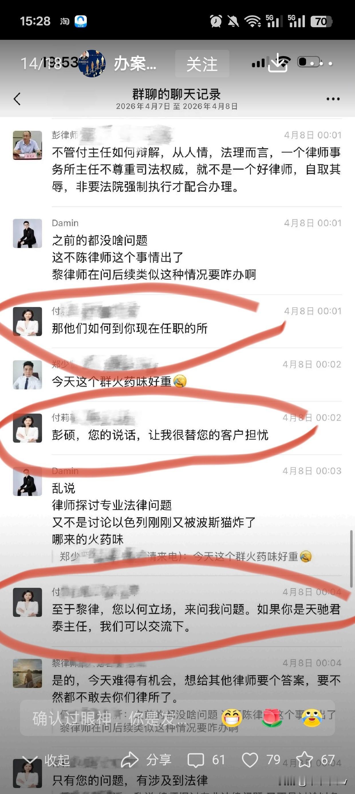 泉州律所这件事,网上聊天记录很多,我只截取2图。