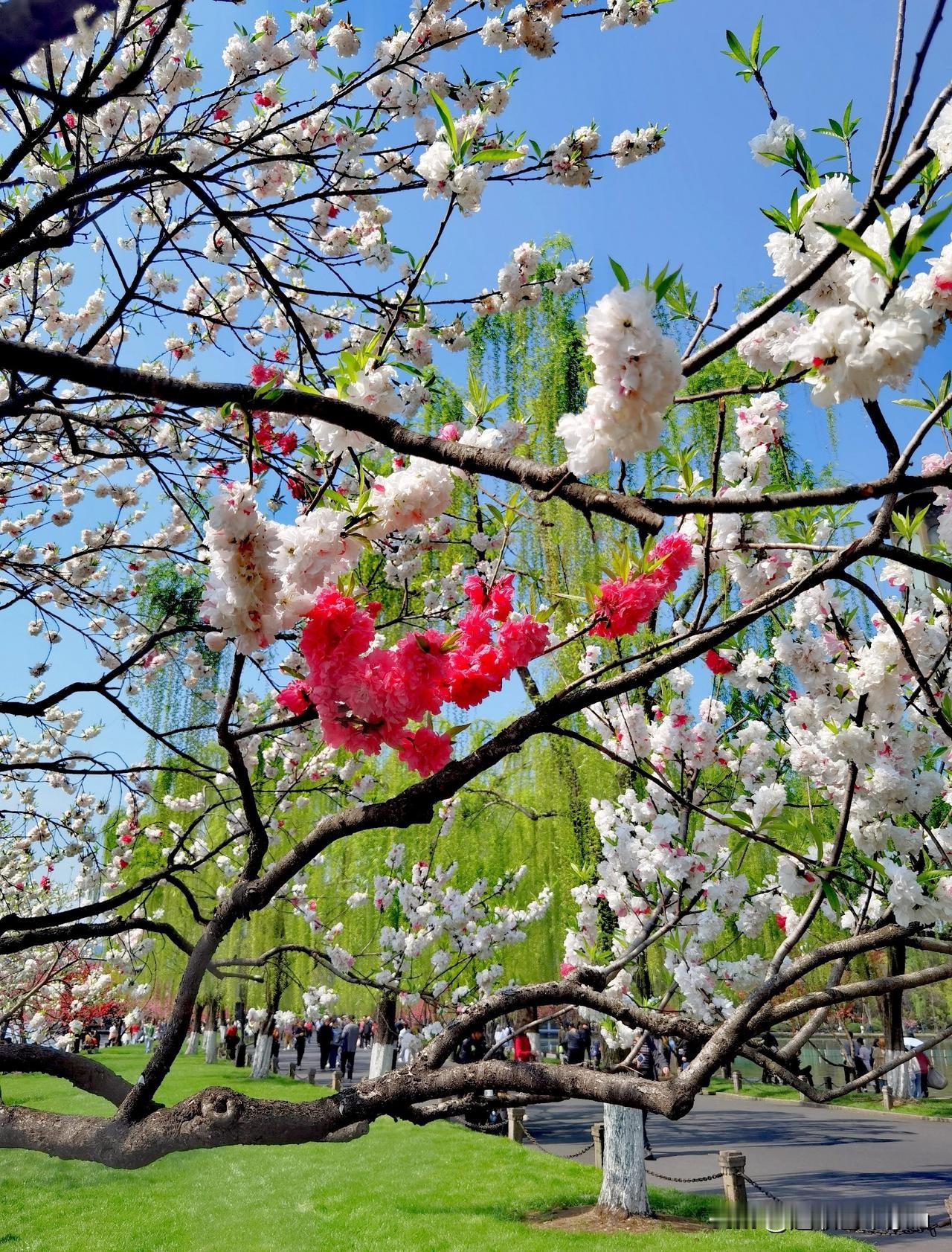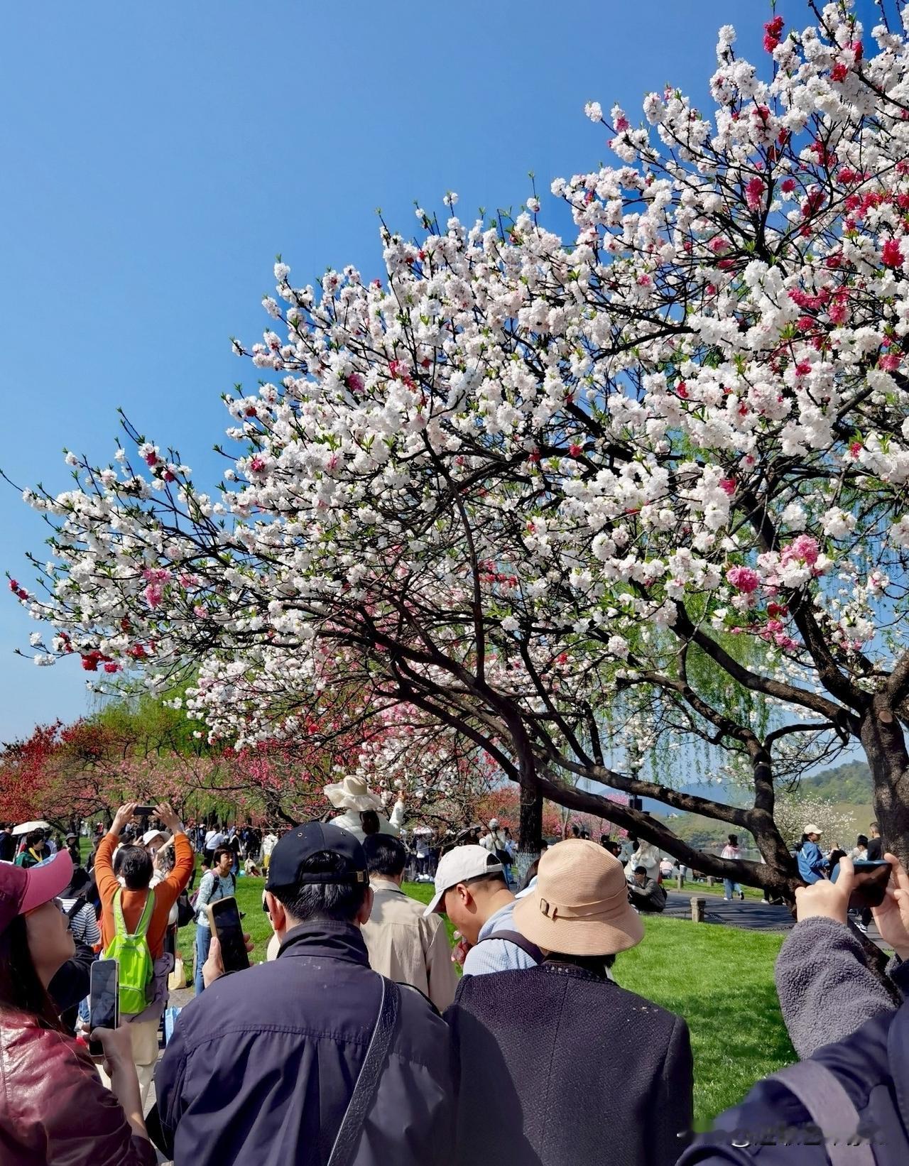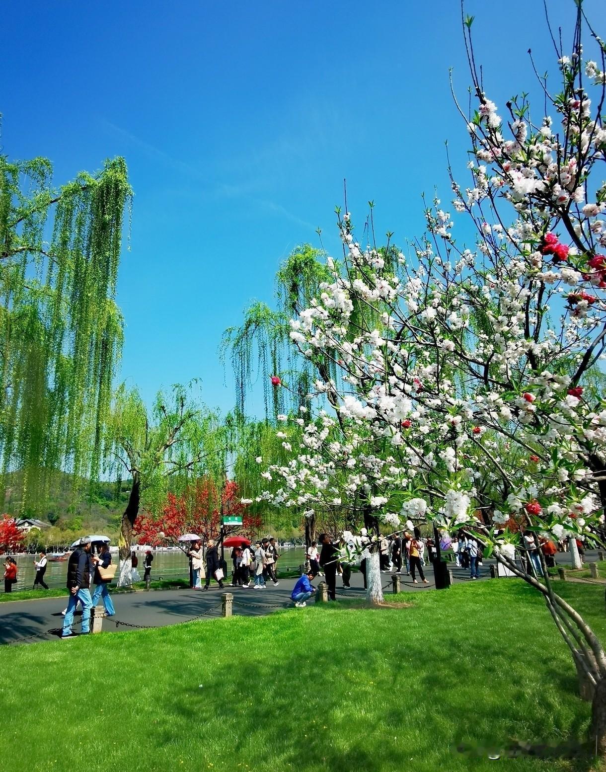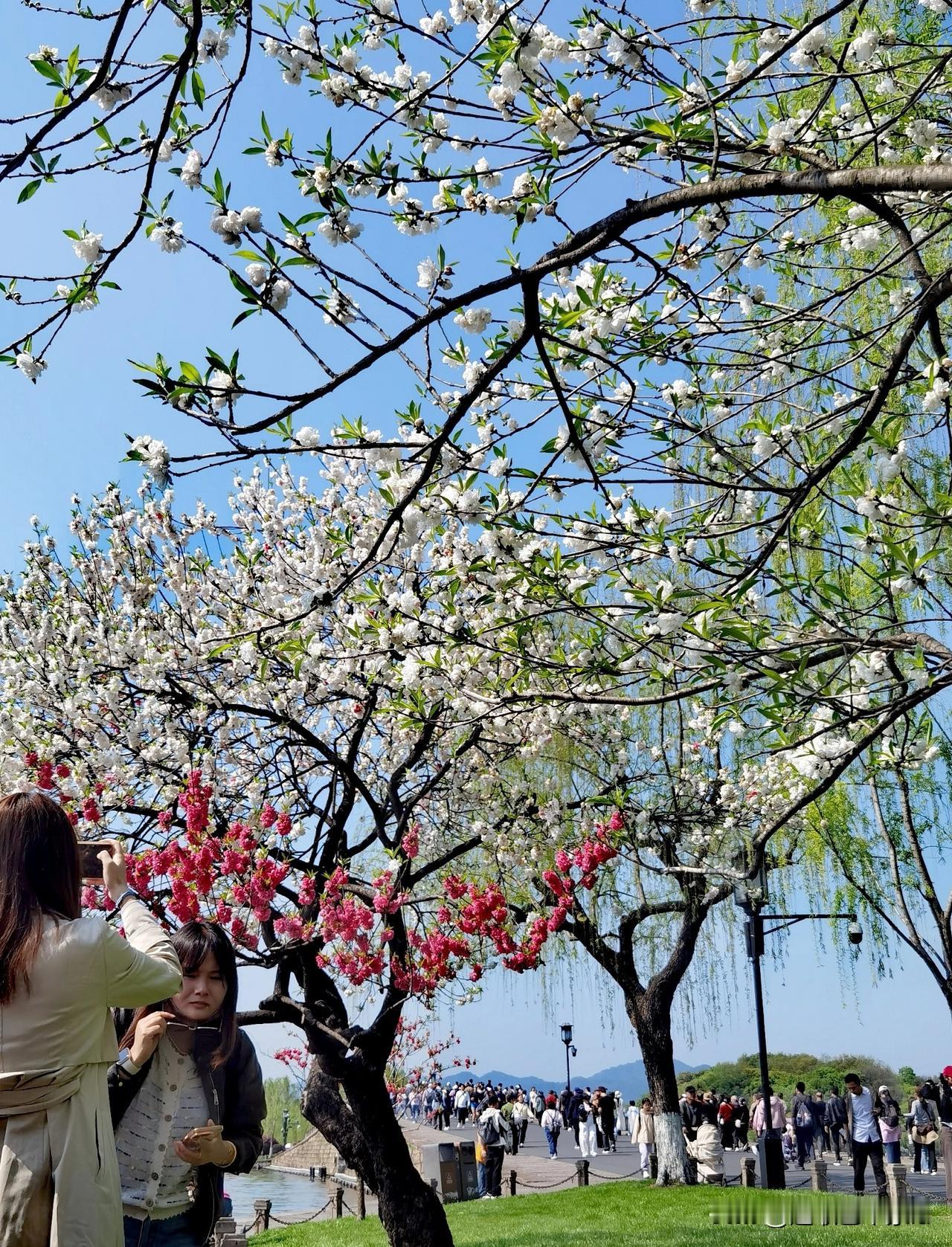 徒步杭州西湖白堤,从断桥到孤山,从白堤到苏堤,目光所及,皆是这生机盎然的配色——柳梢的翠绿抚平心绪,枝头的嫣红点亮笑容,这便是江南春最动人的模样。白堤桃花有单色的、双色的、还有多色的,争相斗艳,值得打卡,拍照留念!西湖漫步路线 西湖徒步路线 西湖徒步攻略 杭州徒步线 杭州北山徒步 西湖徒步行