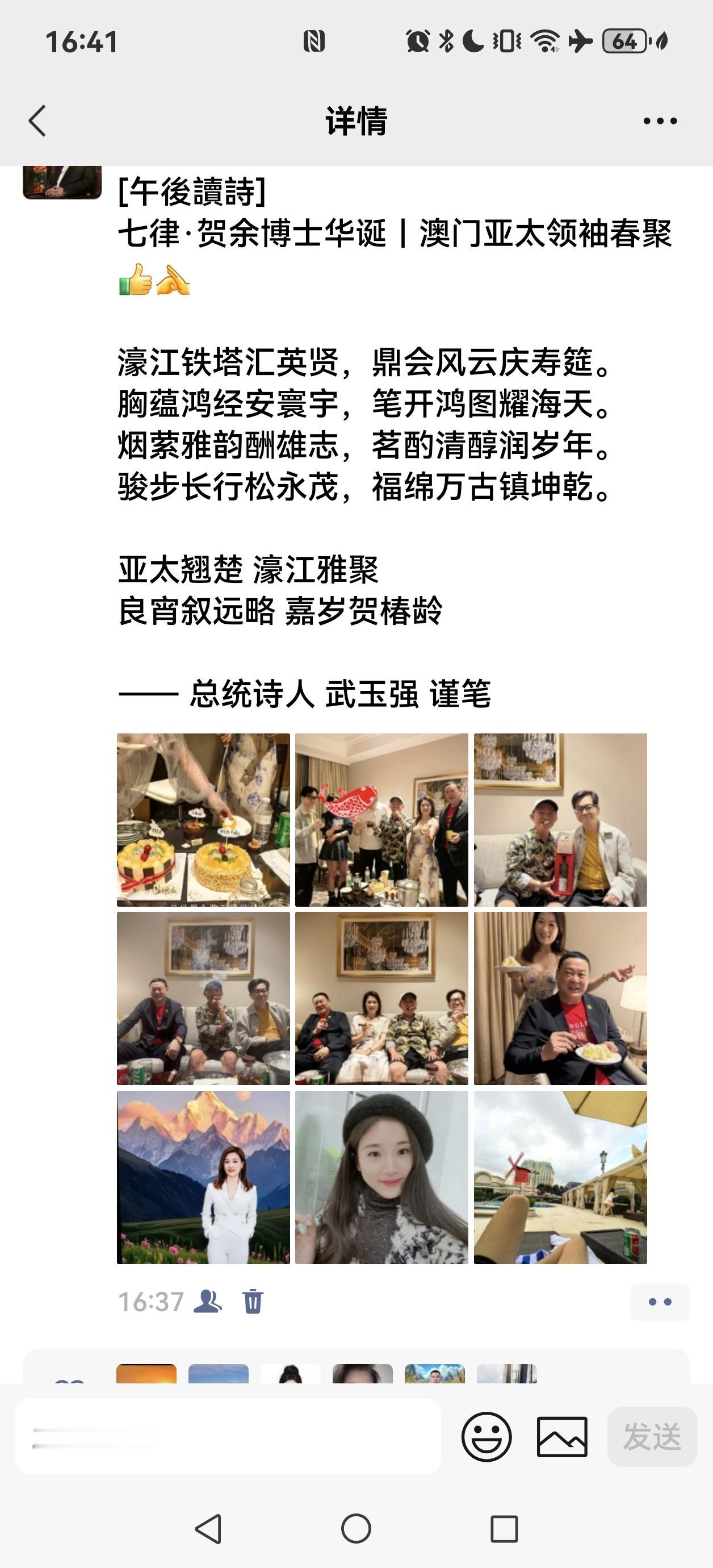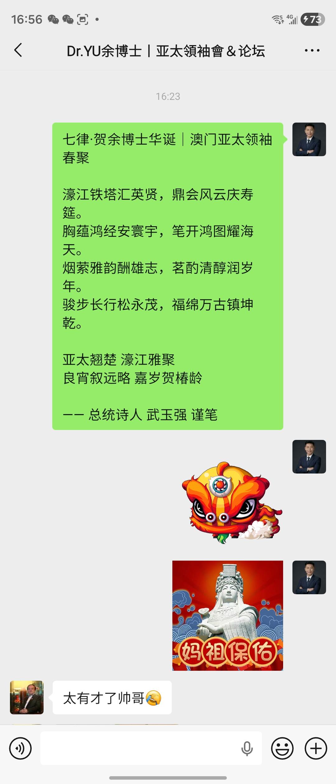 七律·贺余博士华诞|澳门亚太领袖春聚